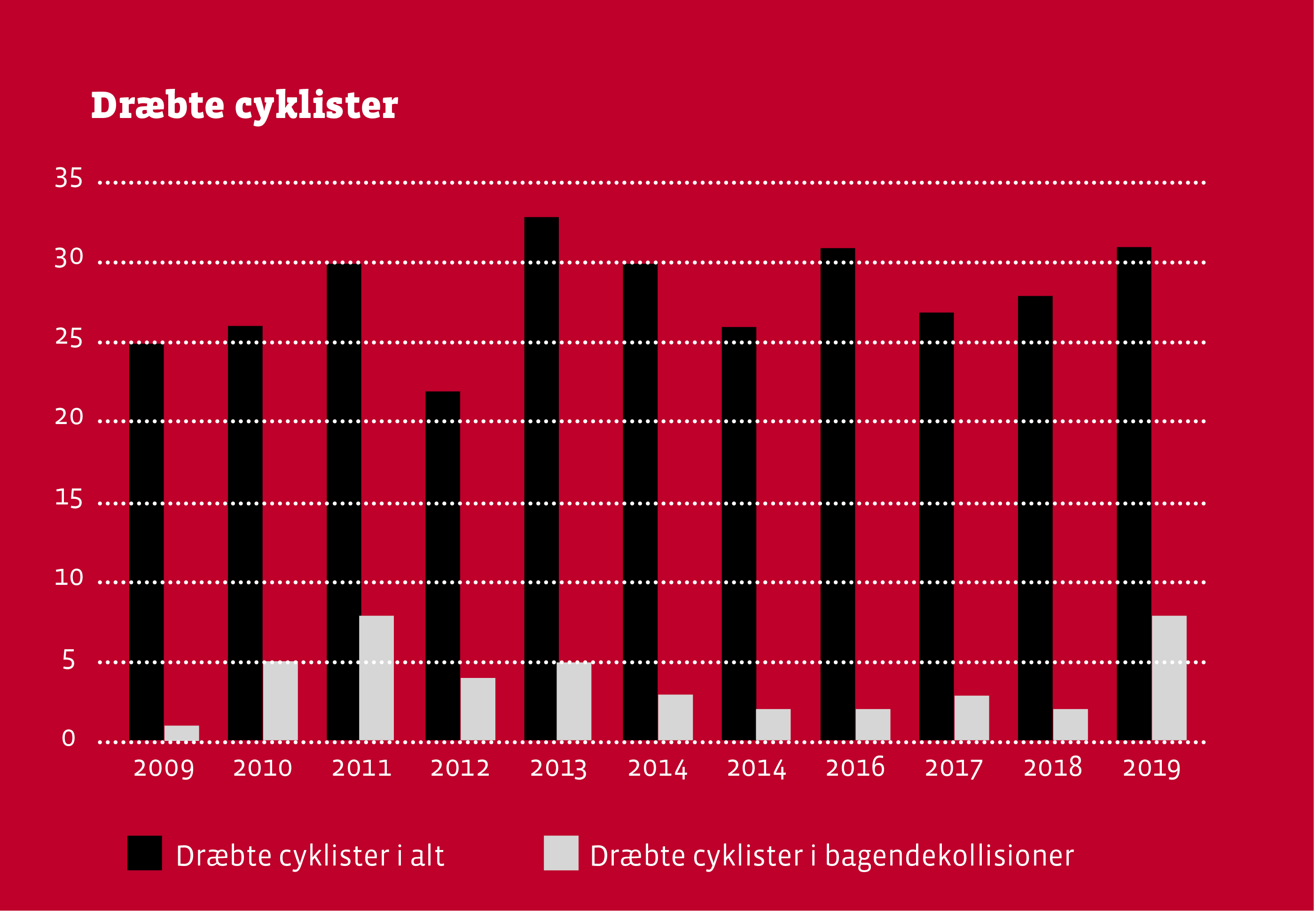 I 2019 var det påkørsel bagfra, der dræbte 8 ud af 31 trafikdræbte cyklister. Det var syv flere end året før.