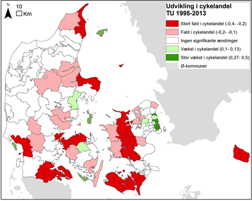 Ændringer i byens struktur, fx befolkningstætheden samt antallet og placering af cykelstier
