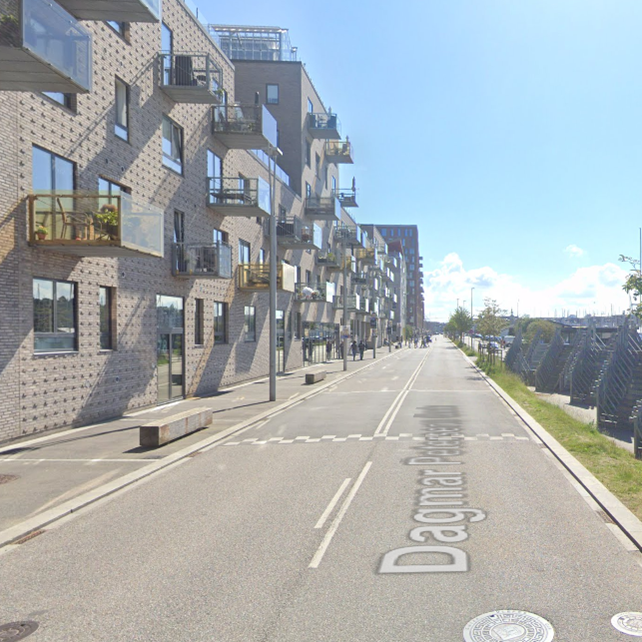 Caseområde Aalborg C1 gennembores af Nyhavnsgade, der først får cykelsti længere inde mod centrum. Billede: Google StreetView