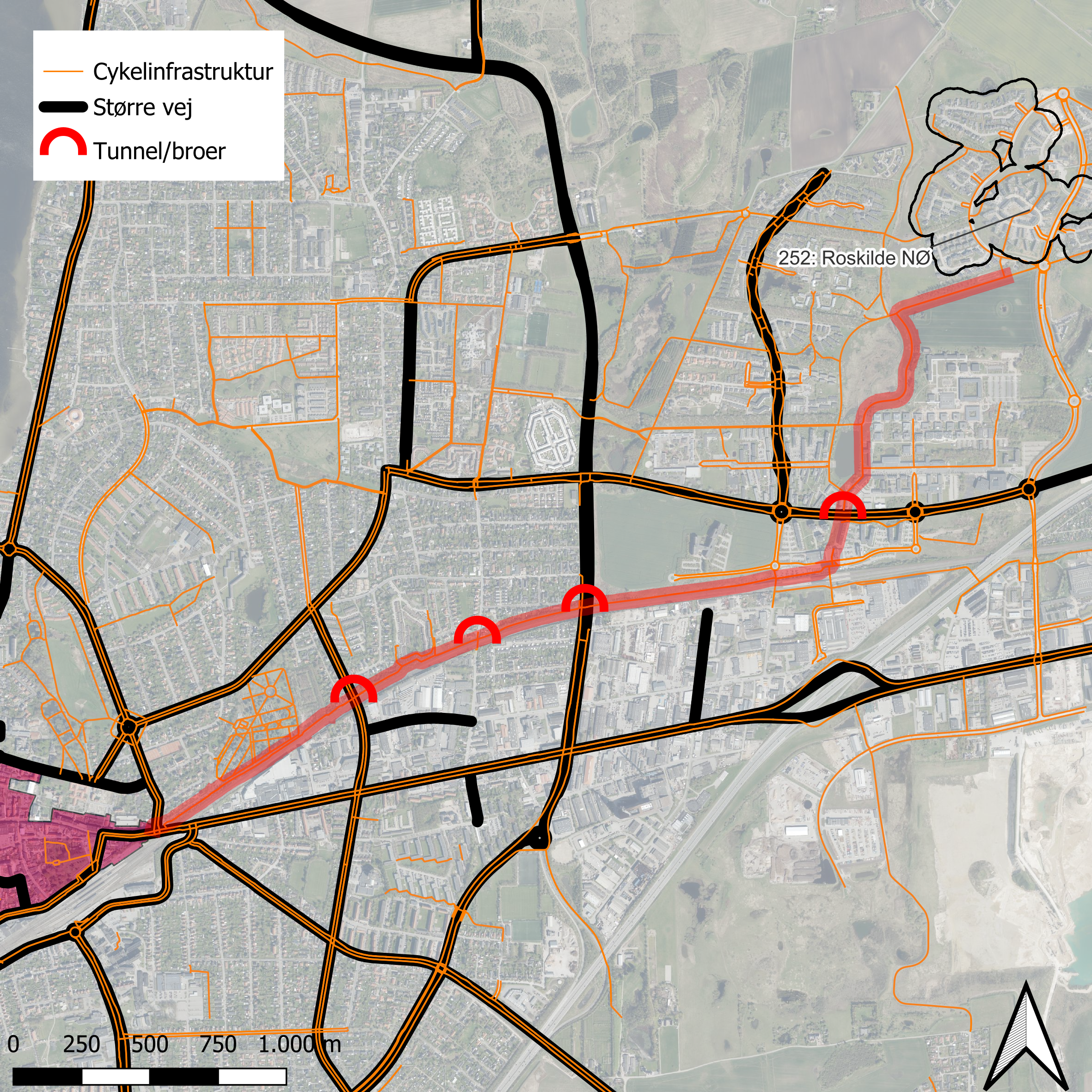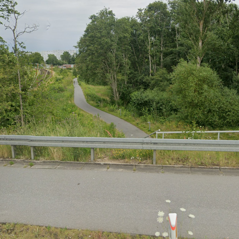Særligt forbindelsen langs jernbanen giver en hurtig og effektiv cykeltur fra caseområde Roskilde NØ til både Trekroner Station og Roskilde Centrum.
