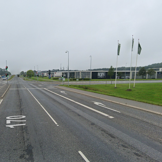 Beboere i Vejle NØ skal cykle langs den trafikerede Horsensvej med adskillige lyskryds ind mod centrum, medmindre de ønsker at tage store omveje. Billede: Google StreetView