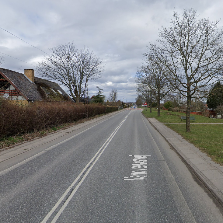 Vandværksvej i Middelfart er blandt de større veje omkring Middelfart SØ uden cykelsti. Middelfart SØ har en lav andel af beboere, der cykler til arbejde/uddannelse. Billede: Google StreetView