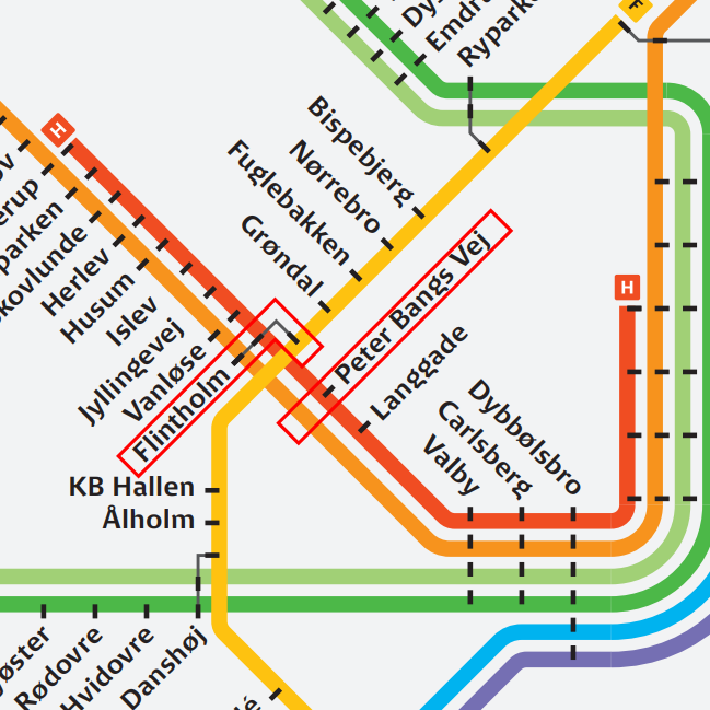 Et godt eksempel er Flintholm Station, hvor de mange afgange og stærke forbindelser gør det attraktivt at cykle til stationen fra et større opland. Flintholm fungerer som et naturligt knudepunkt, hvor høj frekvens understøtter et markant cykel+tog-niveau i forhold til de mange arbejdspladser og indbyggere i området. Det modsatte billede ses ved Peter Bangs Vej Station, hvor udbuddet af afgange er mere begrænset, og hvor andelen af cykel+tog-brugere er lavere, end man kunne forvente ud fra nærområdets potentiale. Sammenlagt peger dette på, at høj afgangsfrekvens i de tætte byområder er en afgørende forudsætning for, at cyklen+tog reelt bliver tilvalgt.