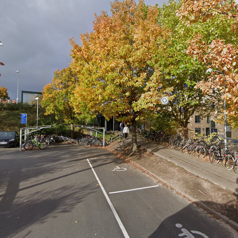 Med mange cykelparkeringspladser tilgængelige fra alle retninger
