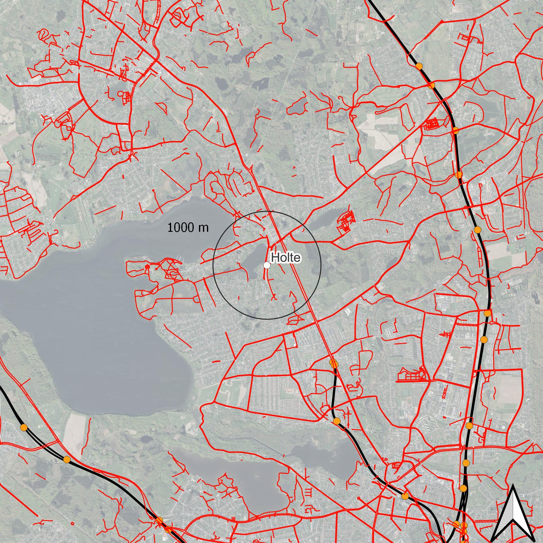 Holte Station fremstår som et godt eksempel på, hvordan denne sammenhæng kan spille positivt ud. Stationen ligger relativt langt fra motorvejsnettet, og samtidig er der en stærk lokal opbakning til toget, hvilket blandt andet afspejles i en høj andel af passagerer, der ankommer på cykel. Modstykket findes i Jægersborg, som er placeret midt i et motorvejskryds, hvor bilens konkurrencefordel er markant. Her er andelen af cykel+tog-brugere væsentligt lavere, selvom de omkringliggende byområder på papiret kunne understøtte en højere andel. Eksemplerne viser, hvordan nærhed til motorvejen ikke blot påvirker det generelle transportvalg, men også i høj grad præger cyklens rolle som tilbringer til toget.