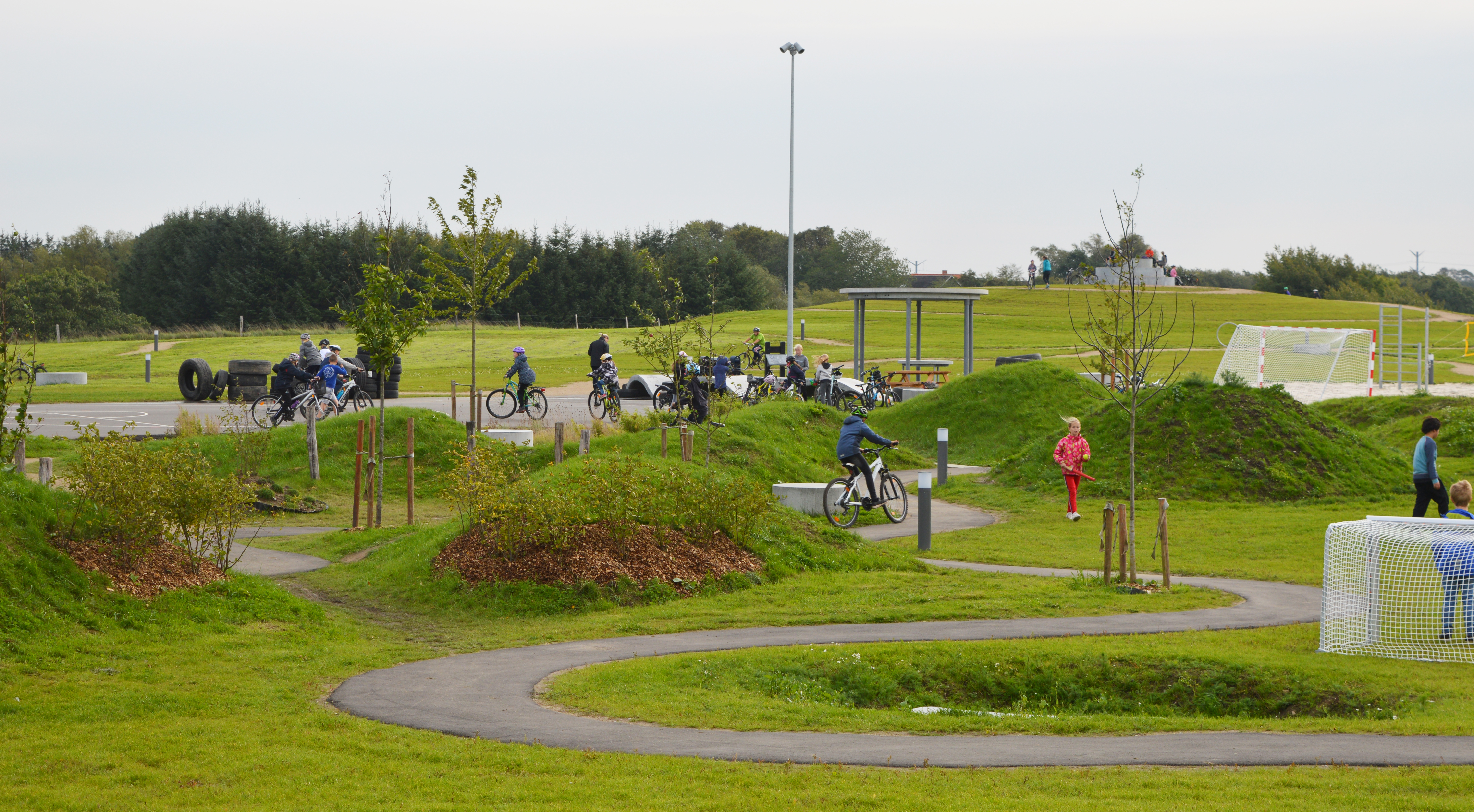 Som en del af et nyt stort anlæg, Arena Park, indgår cykelleg på lige fod med et væld af andre fritidsaktiviteter i byen Kjellerup i Silkeborg Kommune.