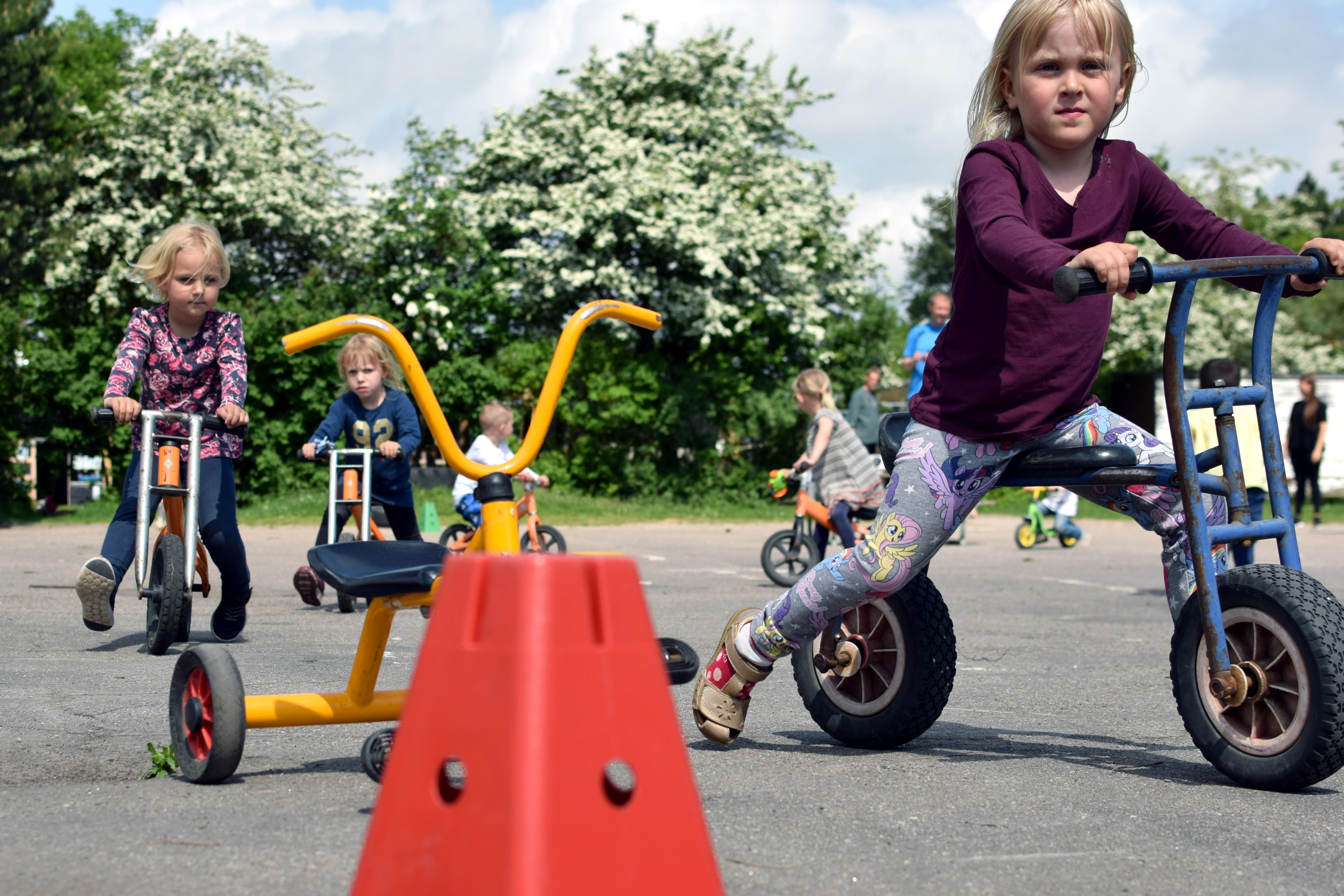 Det er svært at nøjes med at lære én ting, når man leger cykelleg. Sådan siger de i Børnehuset Myretuen i Brøndby. De oplever, at legene i Vi kan cykle! kan bidrage til at nå alle seks mål i de nye, styrkede læreplaner. Se børnehusets råd og erfaringer her.