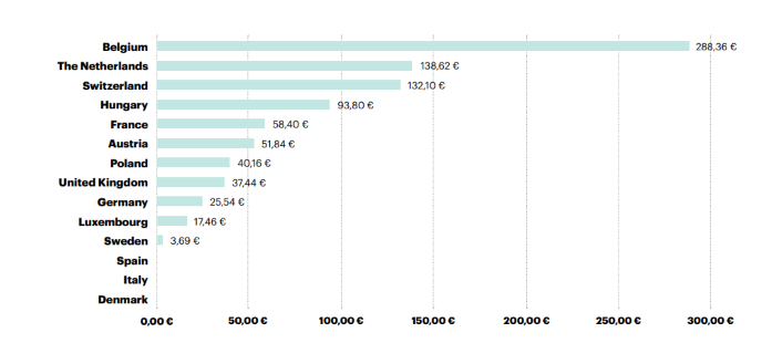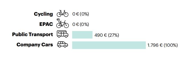 Kilde: European Cyclist's Federation: Tax incentives encouraging employees to cycle to work og European Cyclist's Federation (2018): New interactive tool shows fiscal incentives for cycling is only 15% of the subsidies to company cars