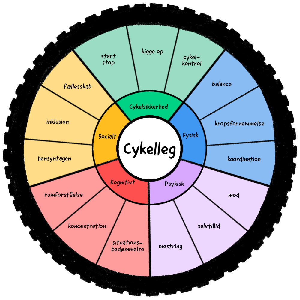 I cykelleg øver børnene koncentration og styrker rum- og regelforståelse og strategisk tænkning. Cykelleg er også oplagt at kombinere med andre læringsmål ved at inddrage eksempelvis bogstaver, tal eller andre elementer og symboler i legene.