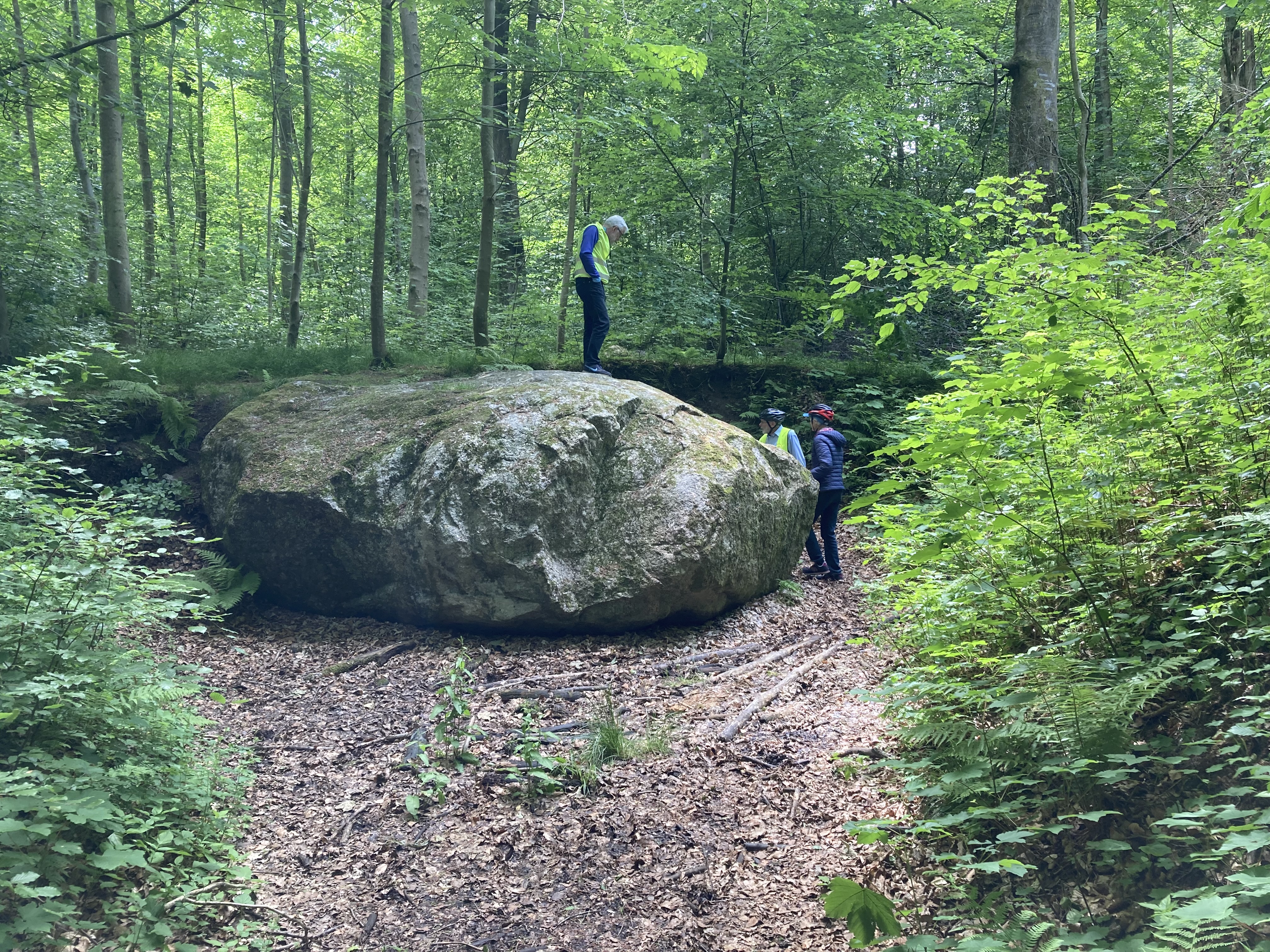Efter ´pitstoppet´ besøgte vi den gamle skovridderbolig Dæmpegård og den delvist udgravede ’Lereltesten’.