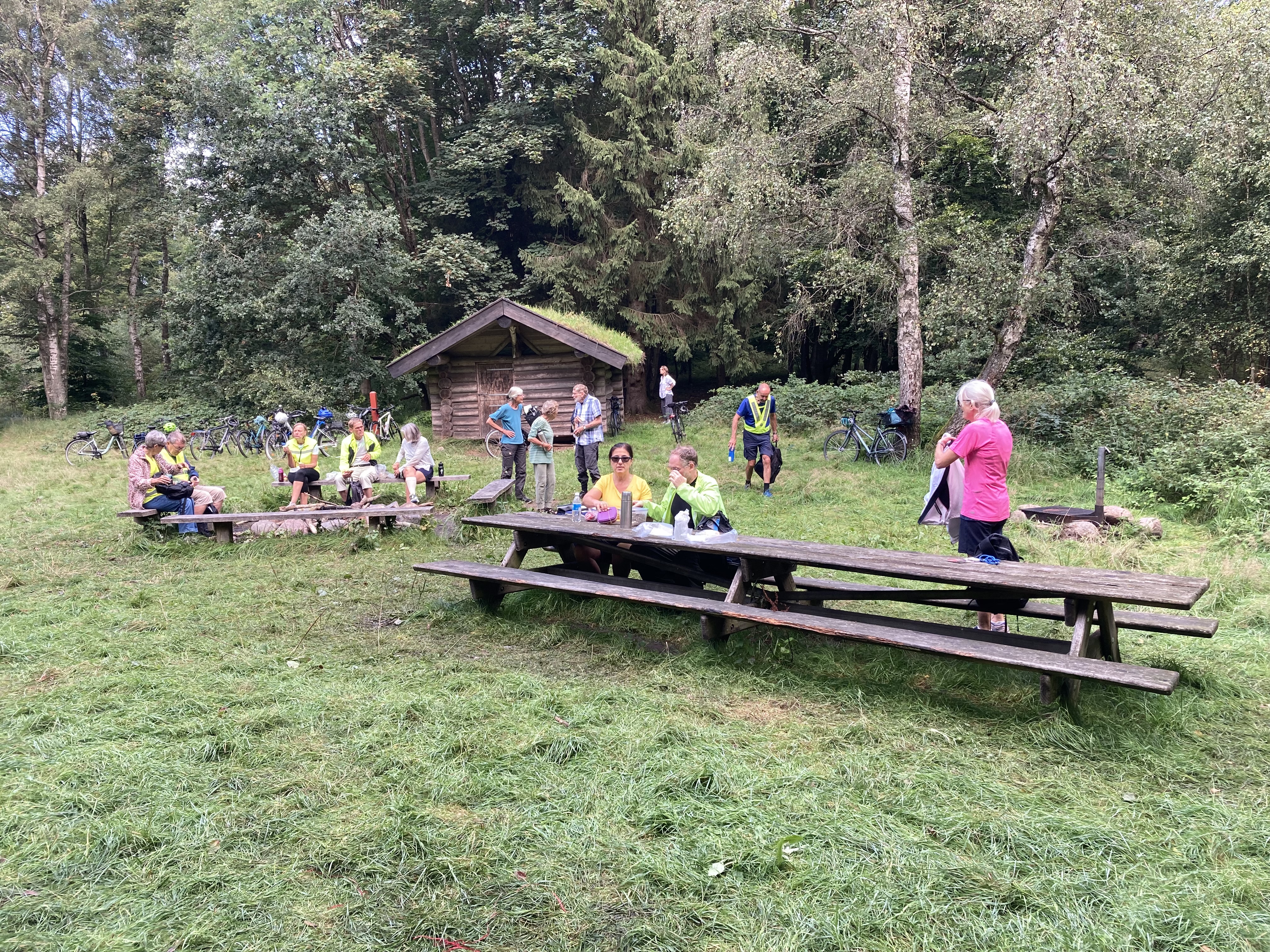 Turen gik videre vest om Lave Skov og over Dageløkke Bakker til Humlebækvej, som vi fulgte (cykelsti!) til Knurrenborg Vang. Her besøgte vi motions- og naturlegepladsen Glenten, inden vi havde pitstop ved skovens shelterplads.