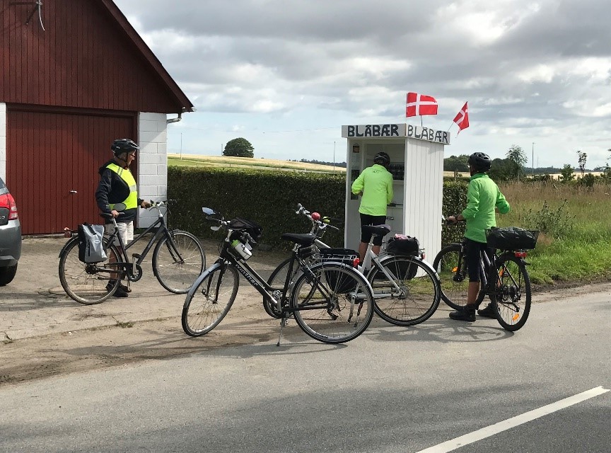 Fantastiske dage med mange bakker – virkelig mange bakker, byger og blæst. Alle 4 cykler er uden strøm, så der skal trædes til. Og det blev der. Hvor end vi kom, var vi gode til at komme i snak med folk. De sødeste mennesker mødte vi. Det havde vi virkelig stor glæde af.