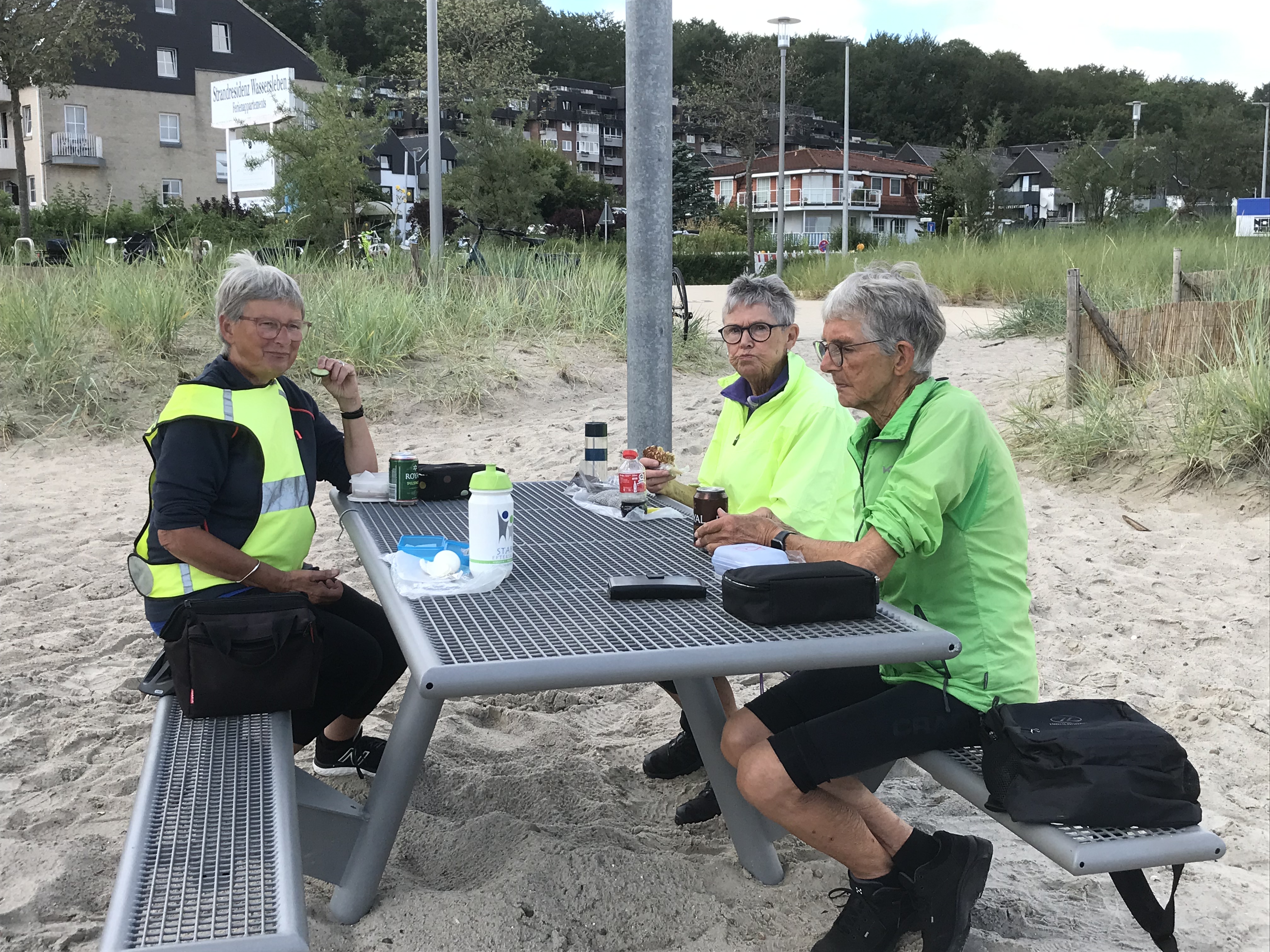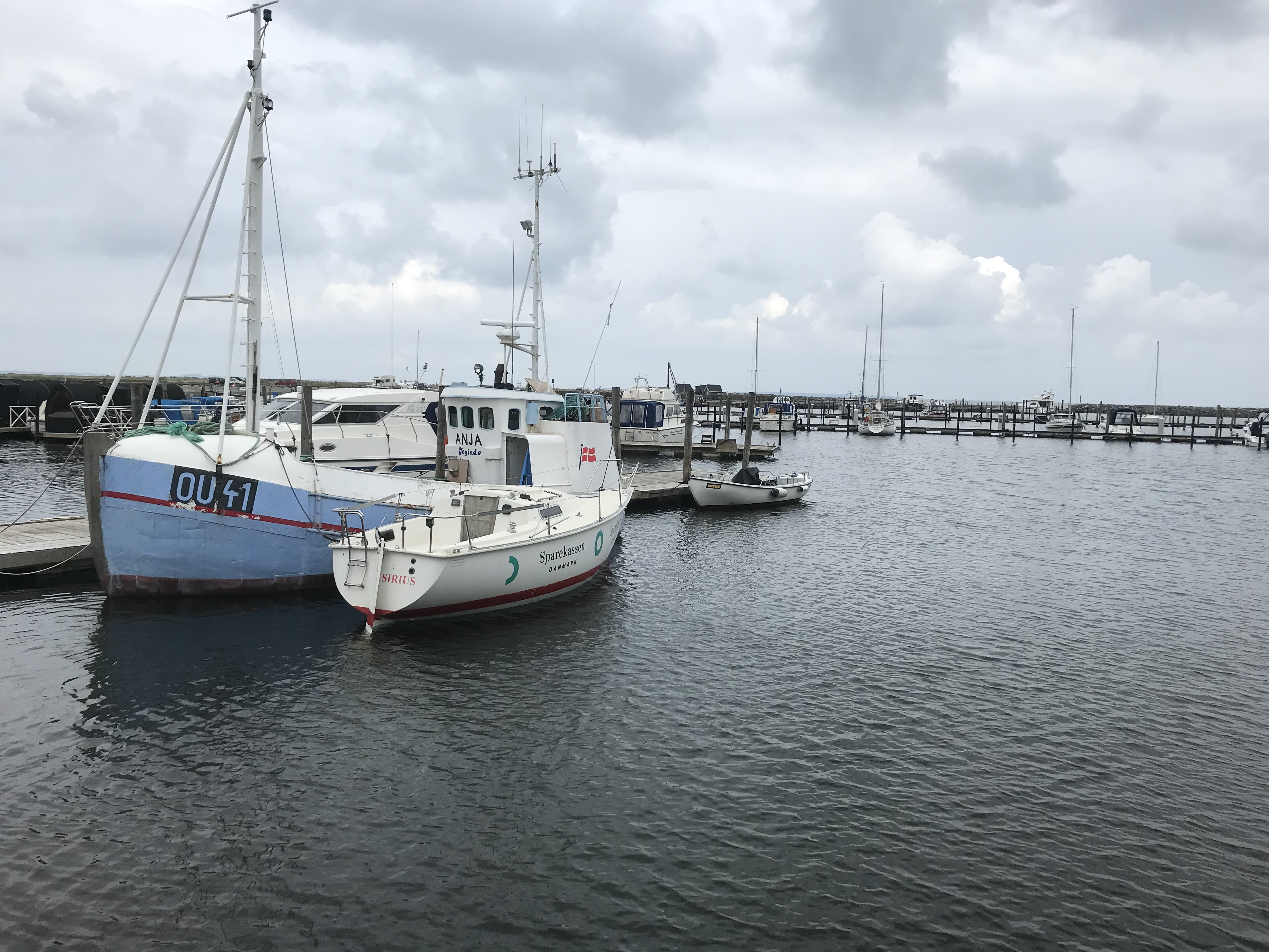 Vi skulle nordpå fra Vejlby til Thyborøn. Vores værtspar Grete og Jes bor i Vejlby og her nød vi rundstykker og kaffe før afgang ved 10.30 mod Thyborøn.