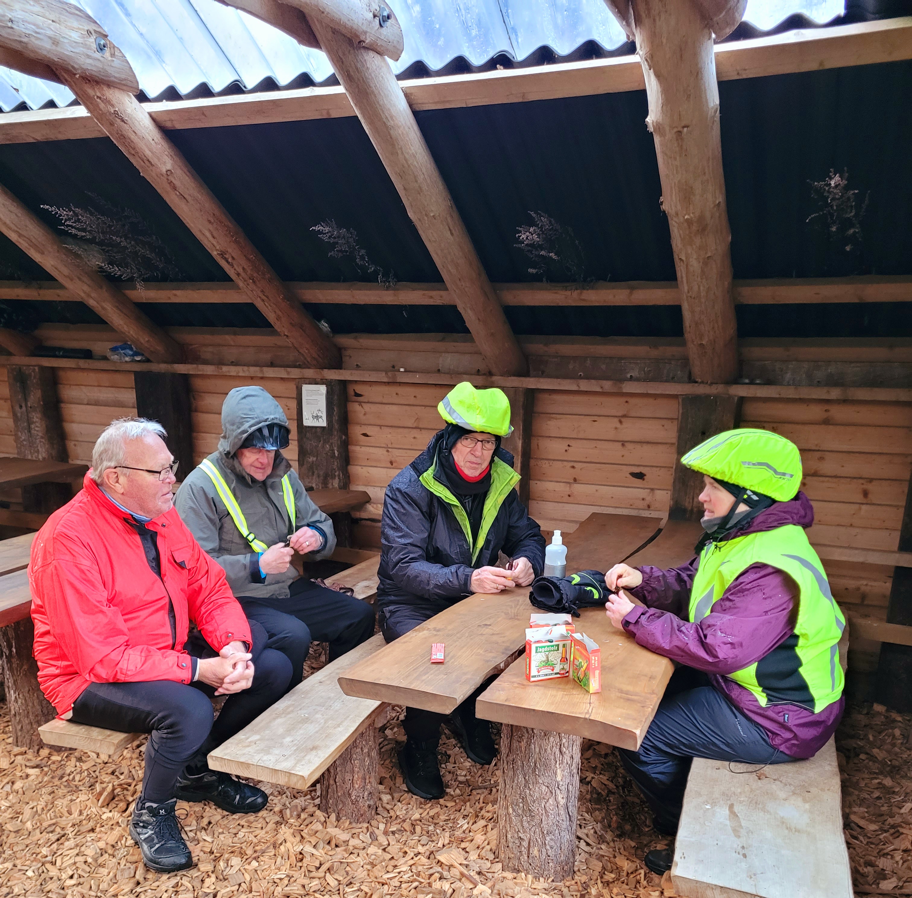 4 .12.24: 7 stk. på 25 km. Turen gik mod Tvis ad gammel cykelsti fra Mejdal. I Tvis gjorde vi holdt ved borde/bænke ved legeplads – vest for købmanden. Bente V gav en skarp. Tak Bente.