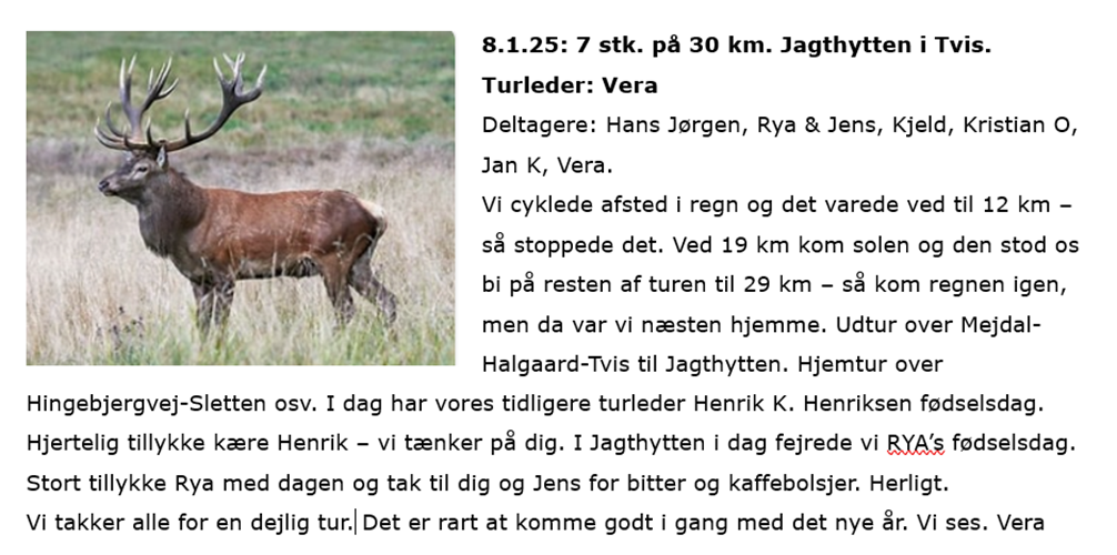 8.1.25: 7 stk. 30 km. Jagthytten i Tvis. Turleder: Vera. Deltagere: Hans Jørgen, Rya & Jens, Keld, Kristian O, Jan K, Vera.