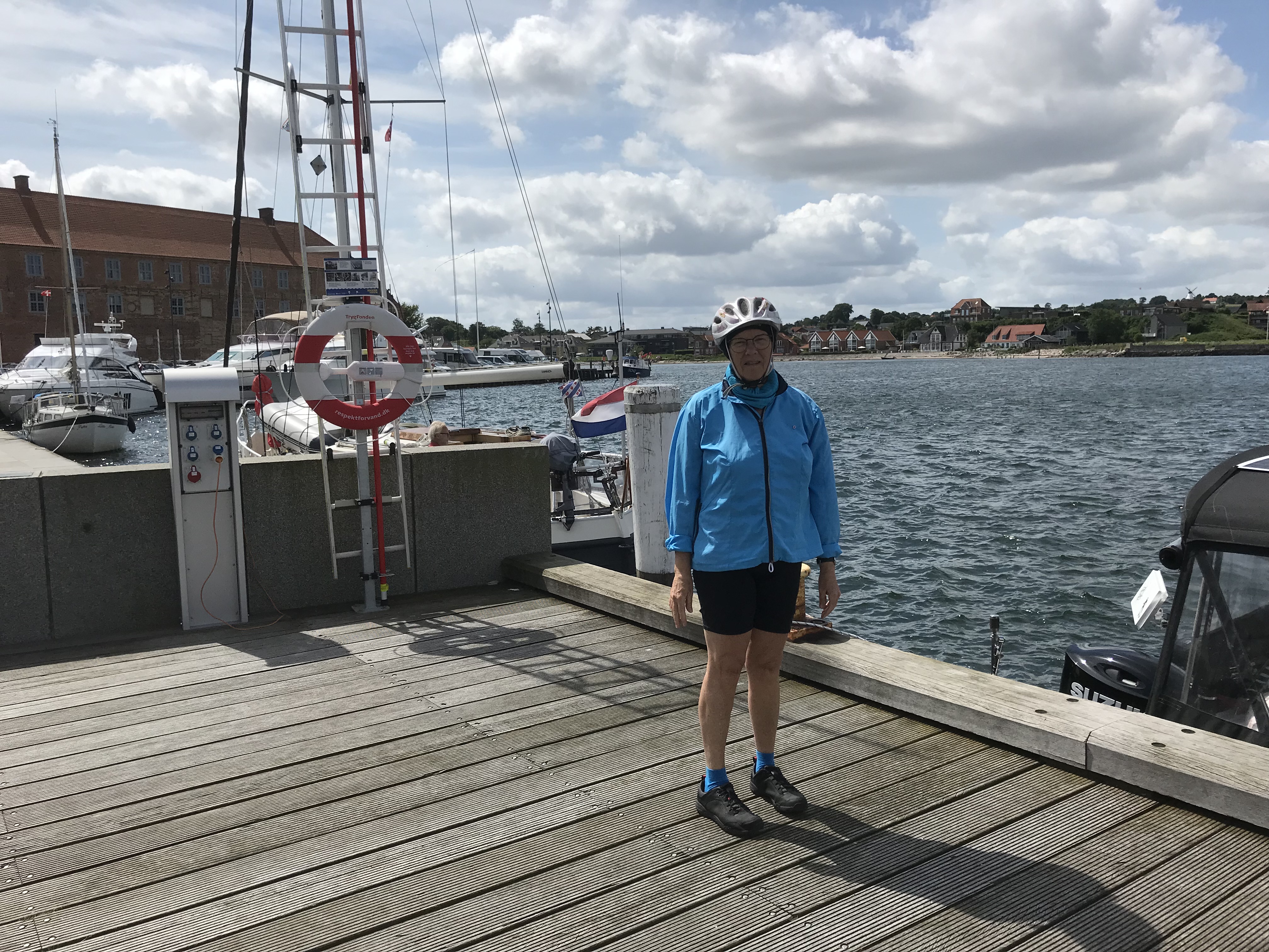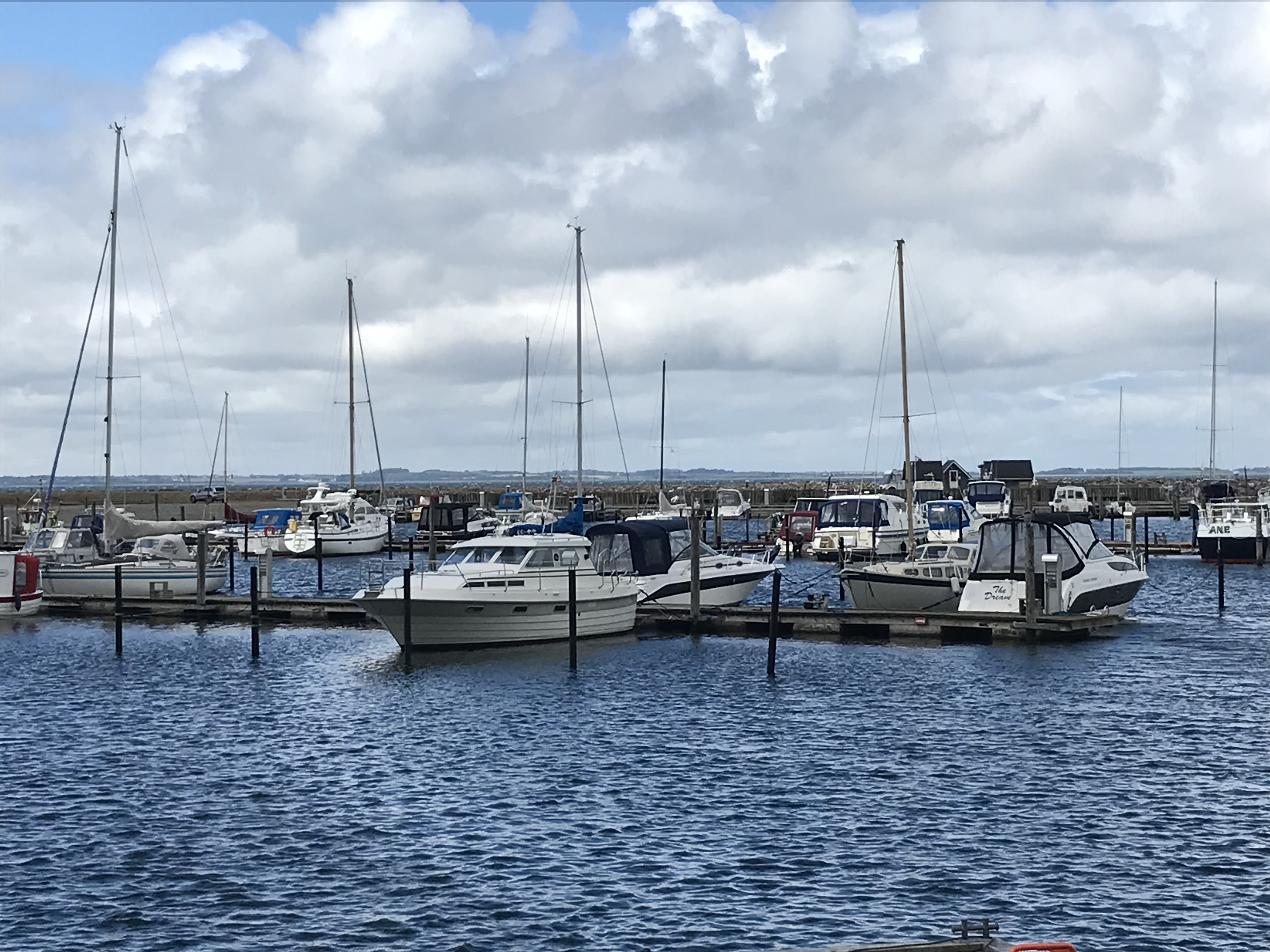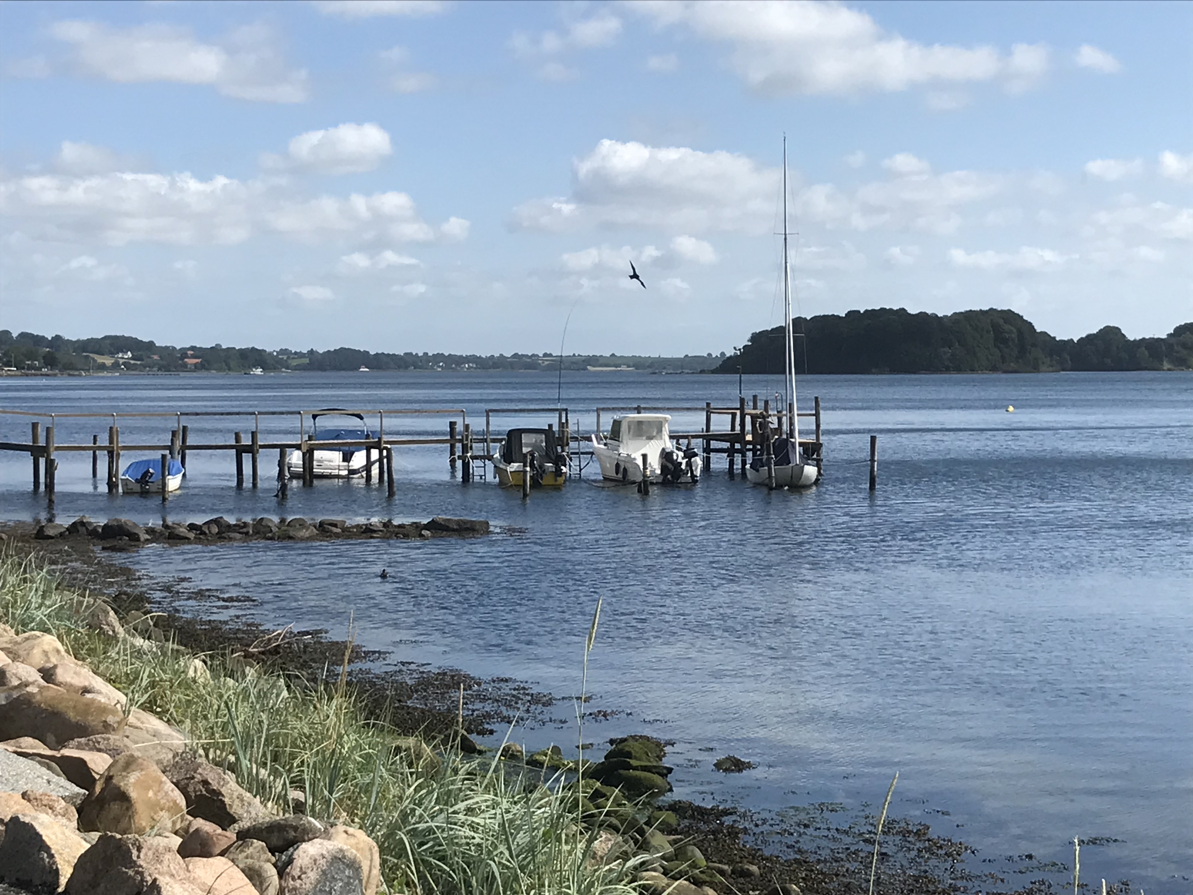 Over dæmningen til Jegindø, hvor vi fik frokost i BØL. Vi var ved havnen, hvor der er muslingefangst og der sker stor eksport til mange europæiske lande af bl.a. muslinge fra Jegindø.