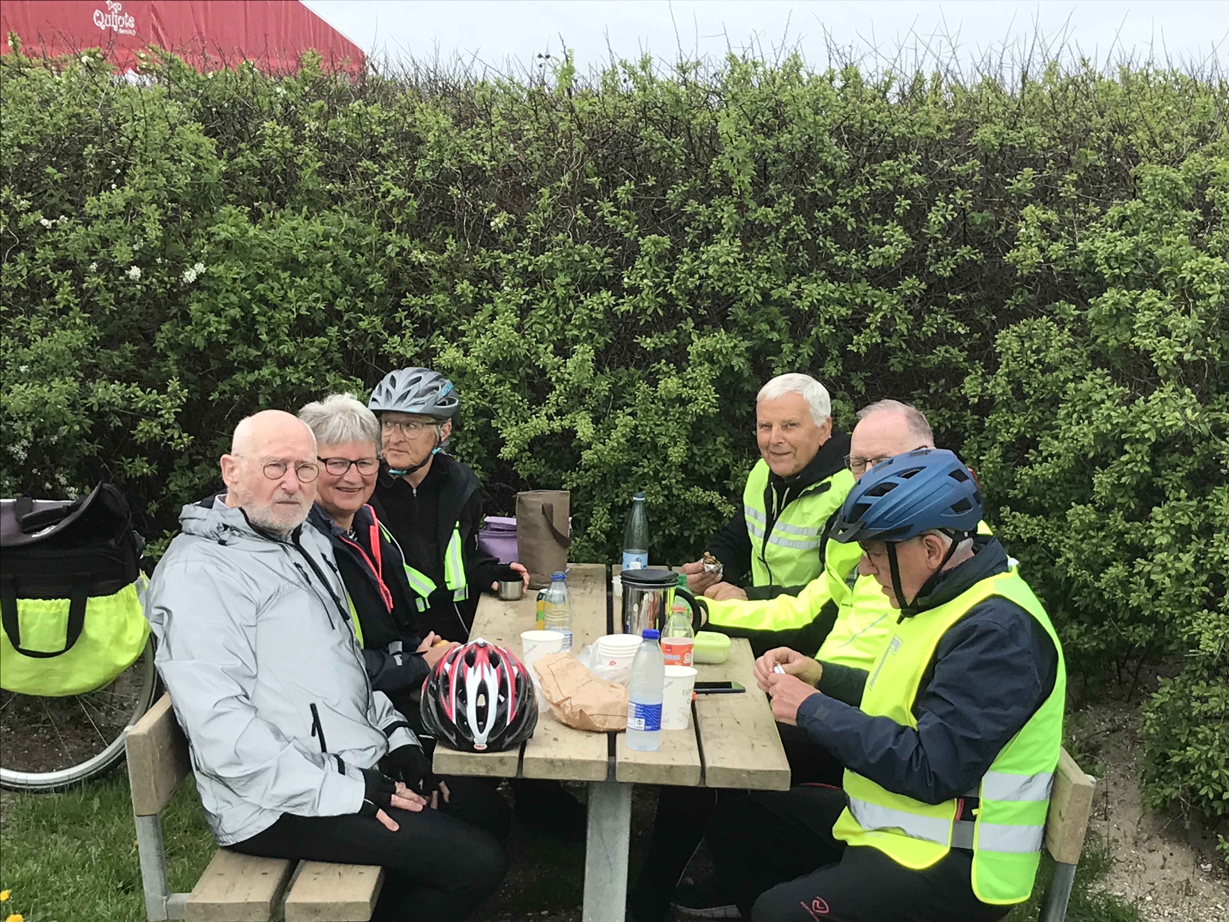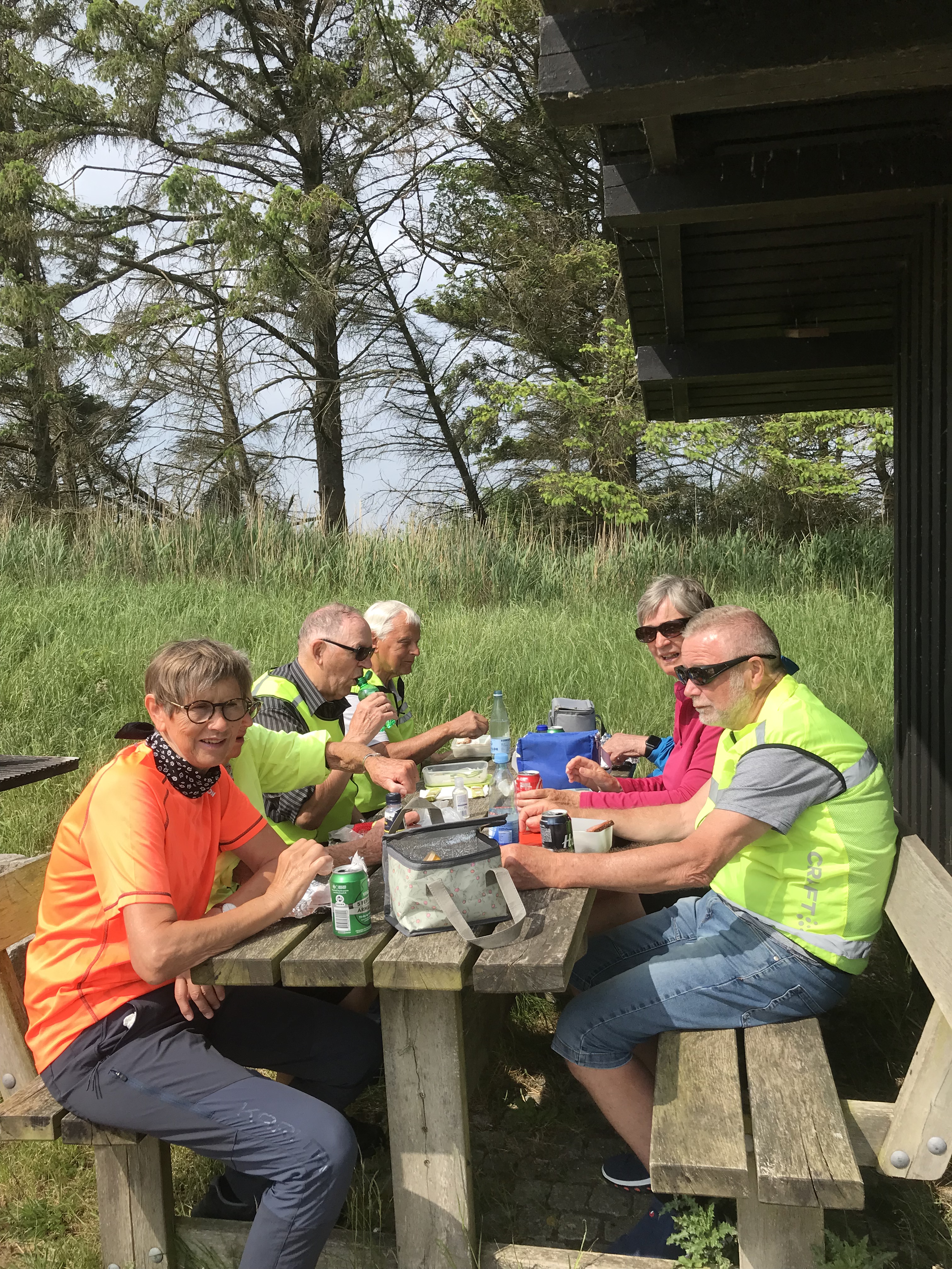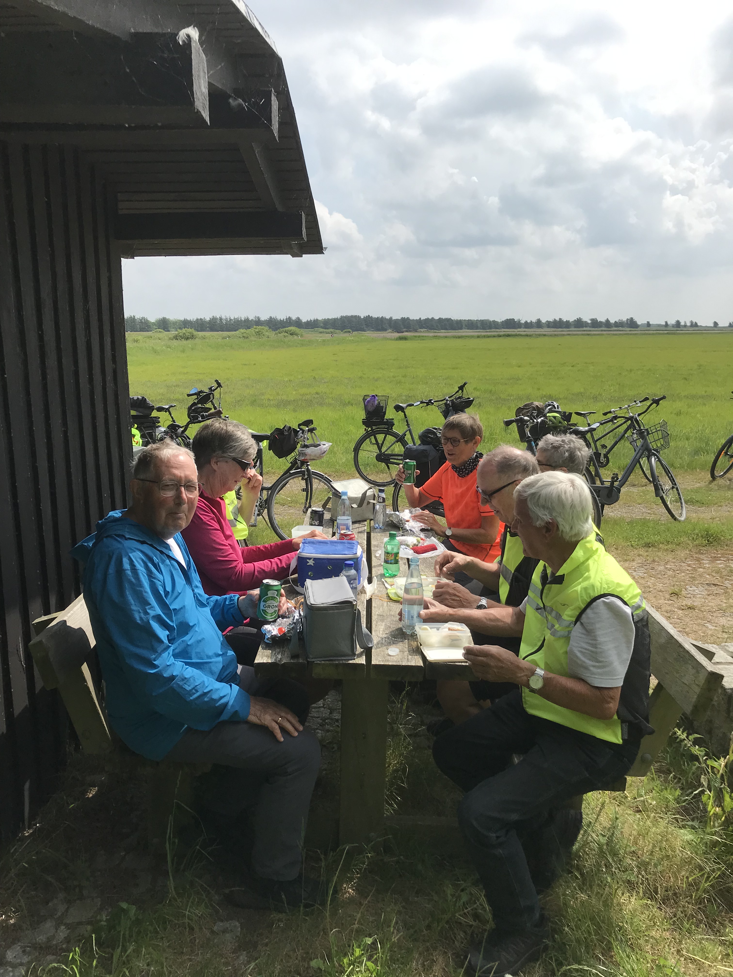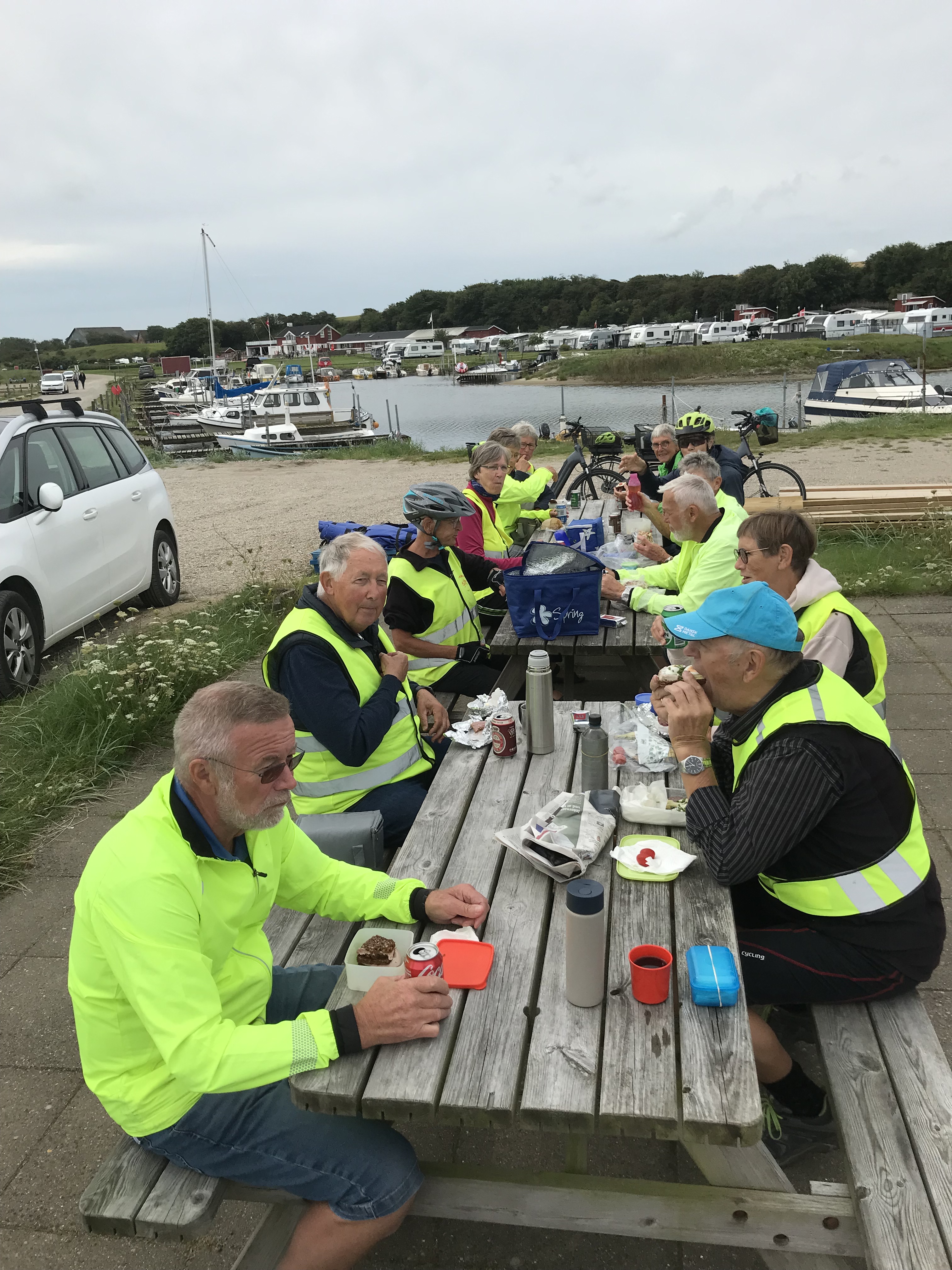 Utroligt flot cykelvejr i dag. 2 m/s fra syd – så det var stort set ingen vind. Vi satte kursen mod Sørvad og havde pause i Fiskerhuset. Vi havde 2 stk. vi skulle have fejret i dag – fødselsdag ved Jens Thomsen og Vera Bagge.
