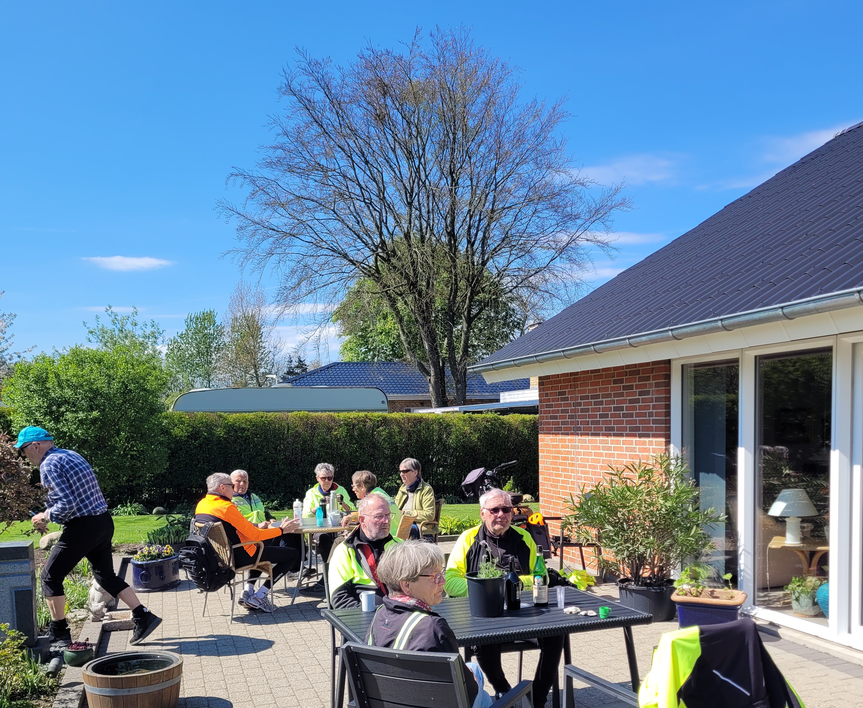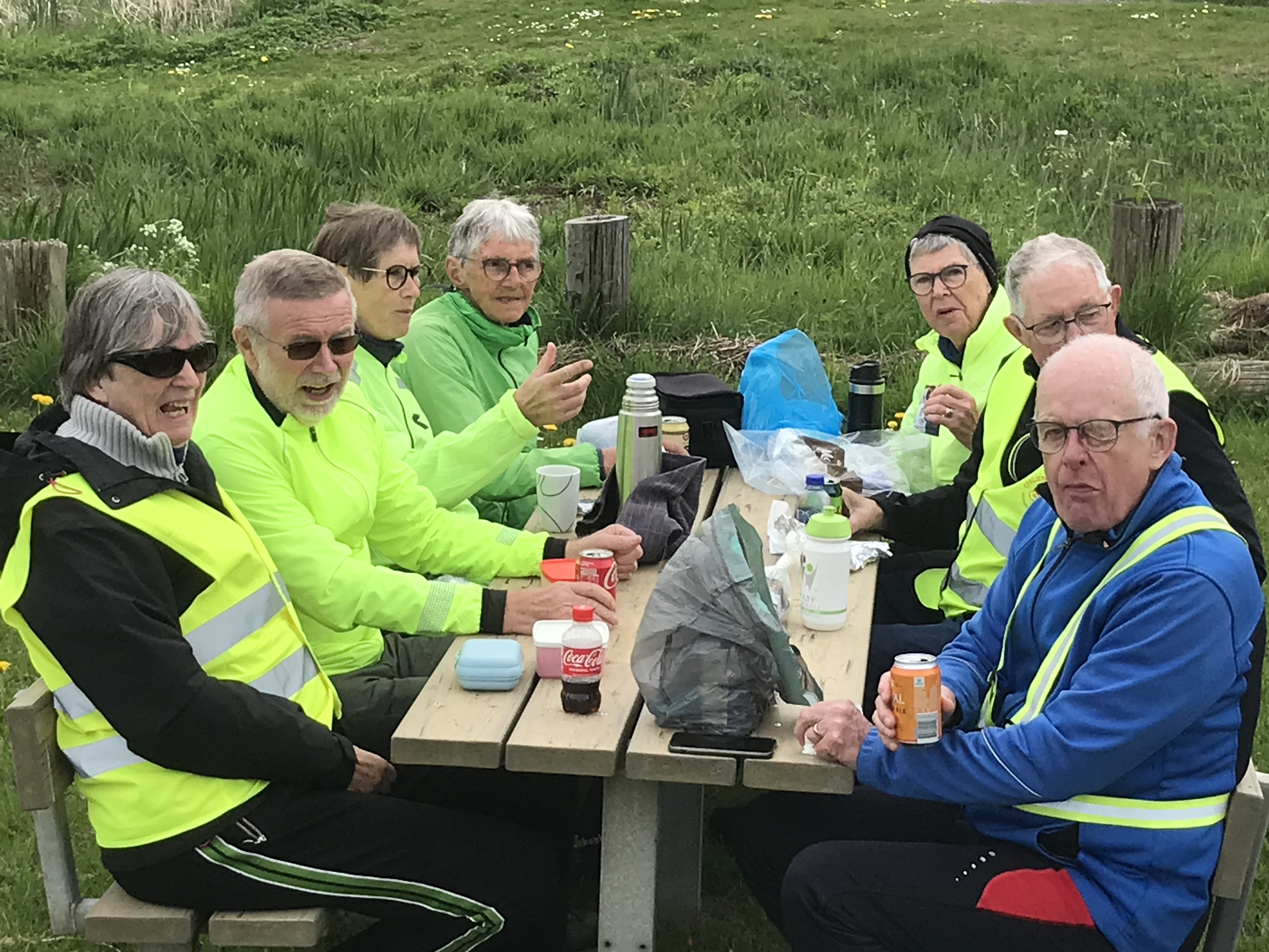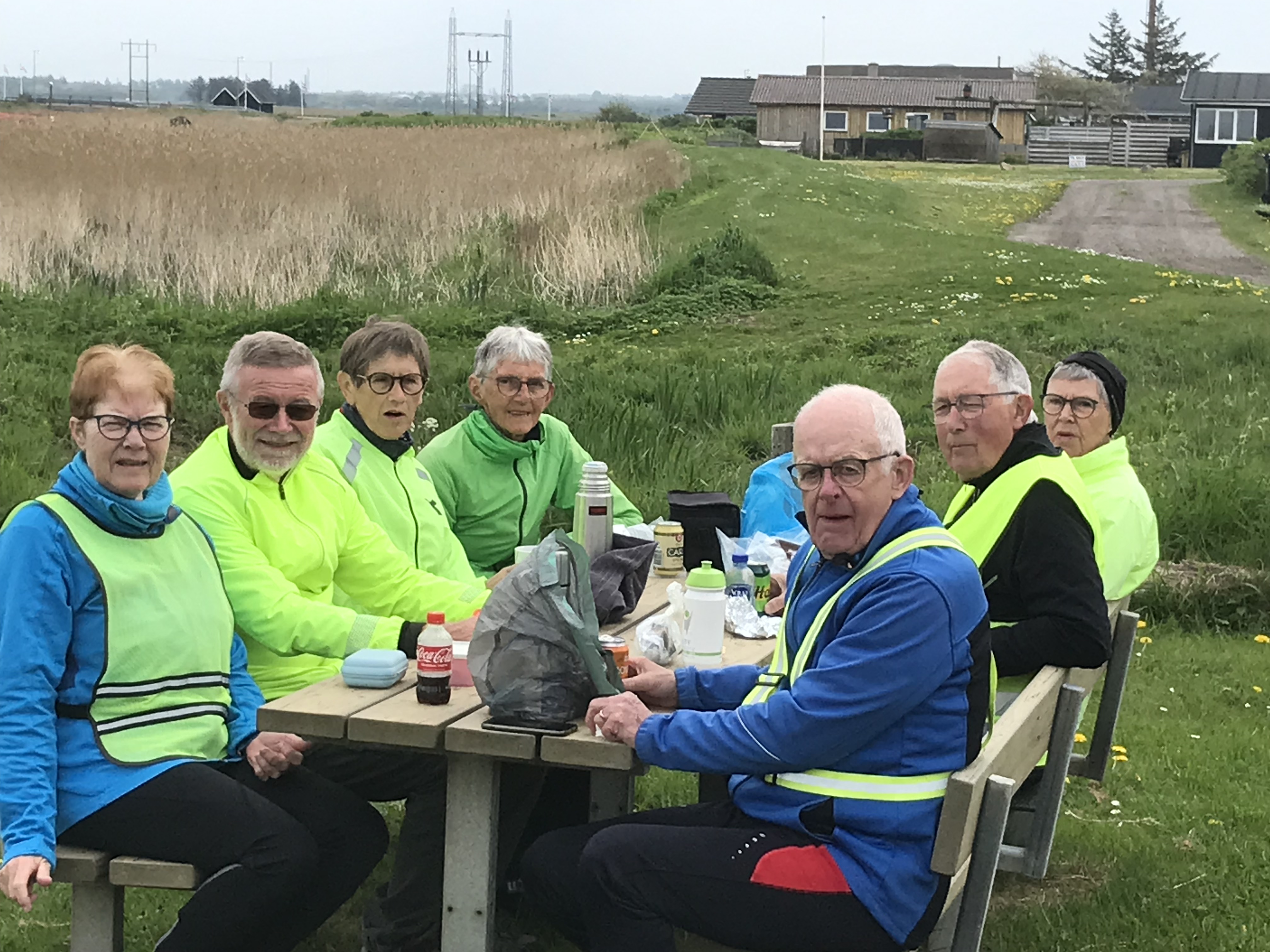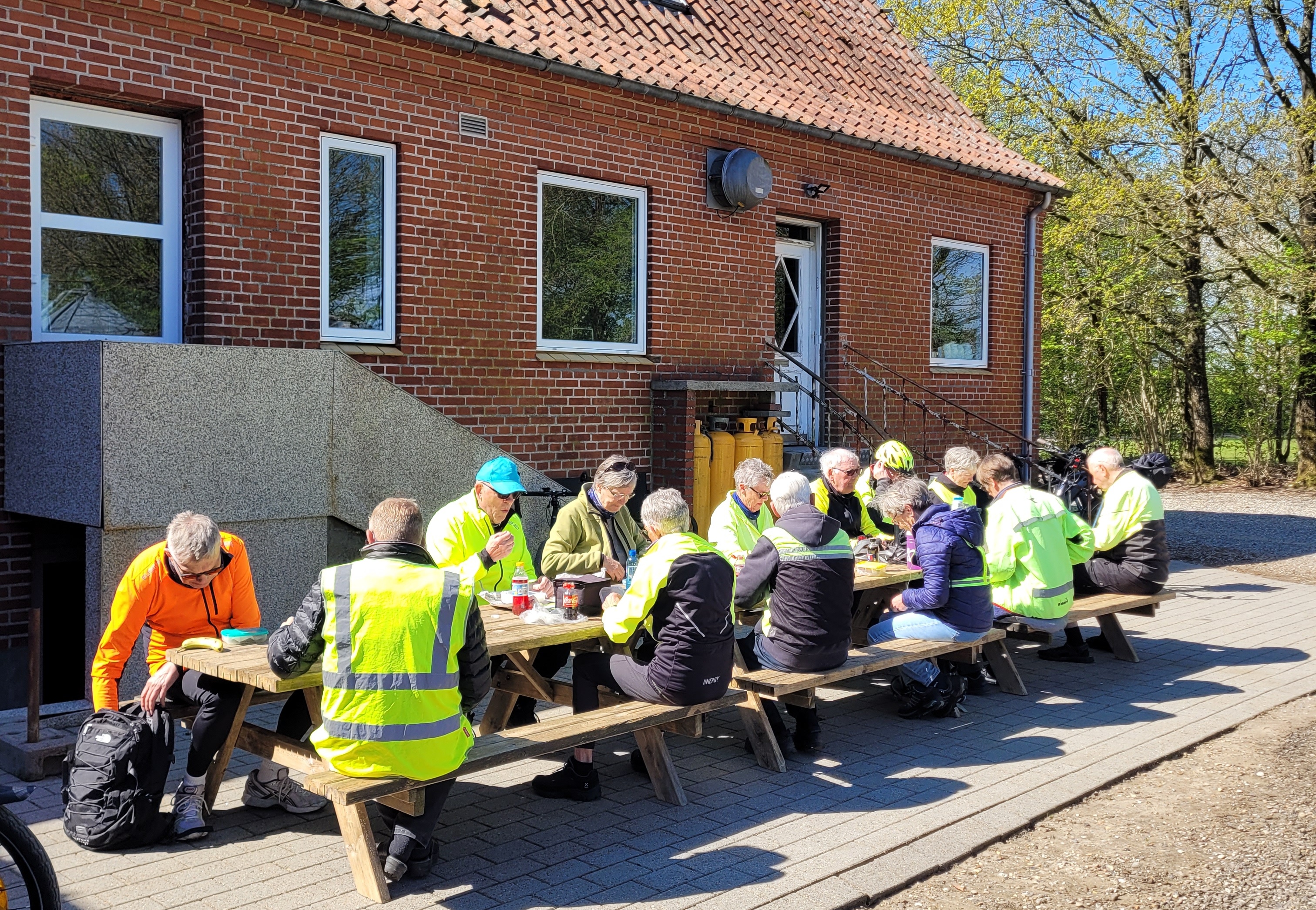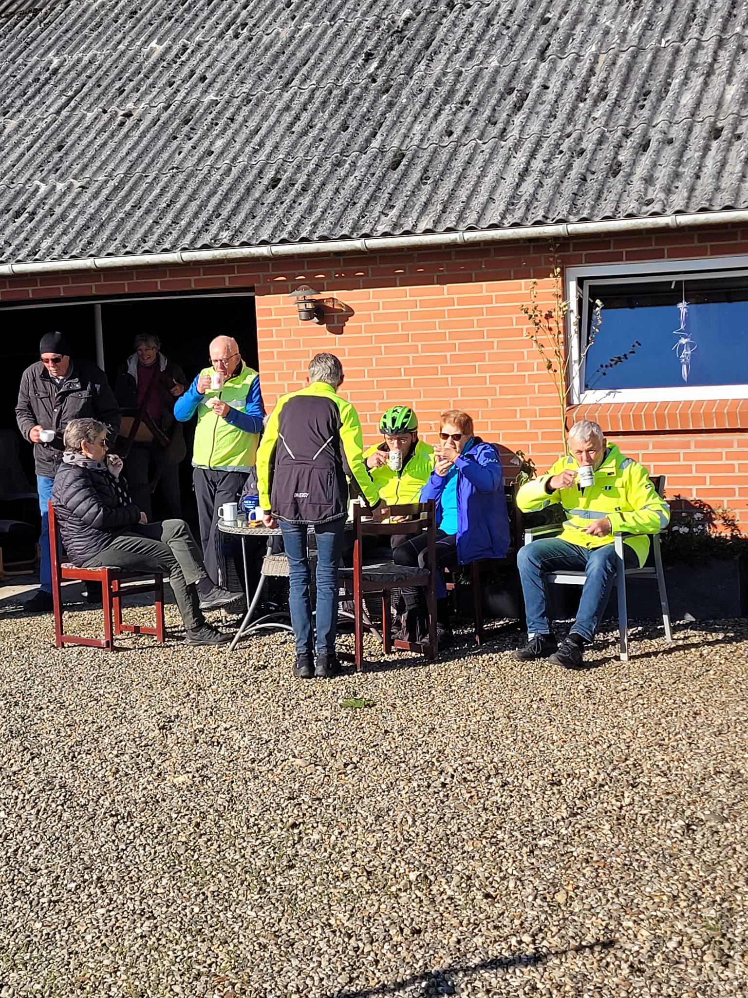 Utroligt flot cykelvejr i dag. 2 m/s fra syd – så det var stort set ingen vind. Vi satte kursen mod Sørvad og havde pause i Fiskerhuset. Vi havde 2 stk. vi skulle have fejret i dag – fødselsdag ved Jens Thomsen og Vera Bagge.