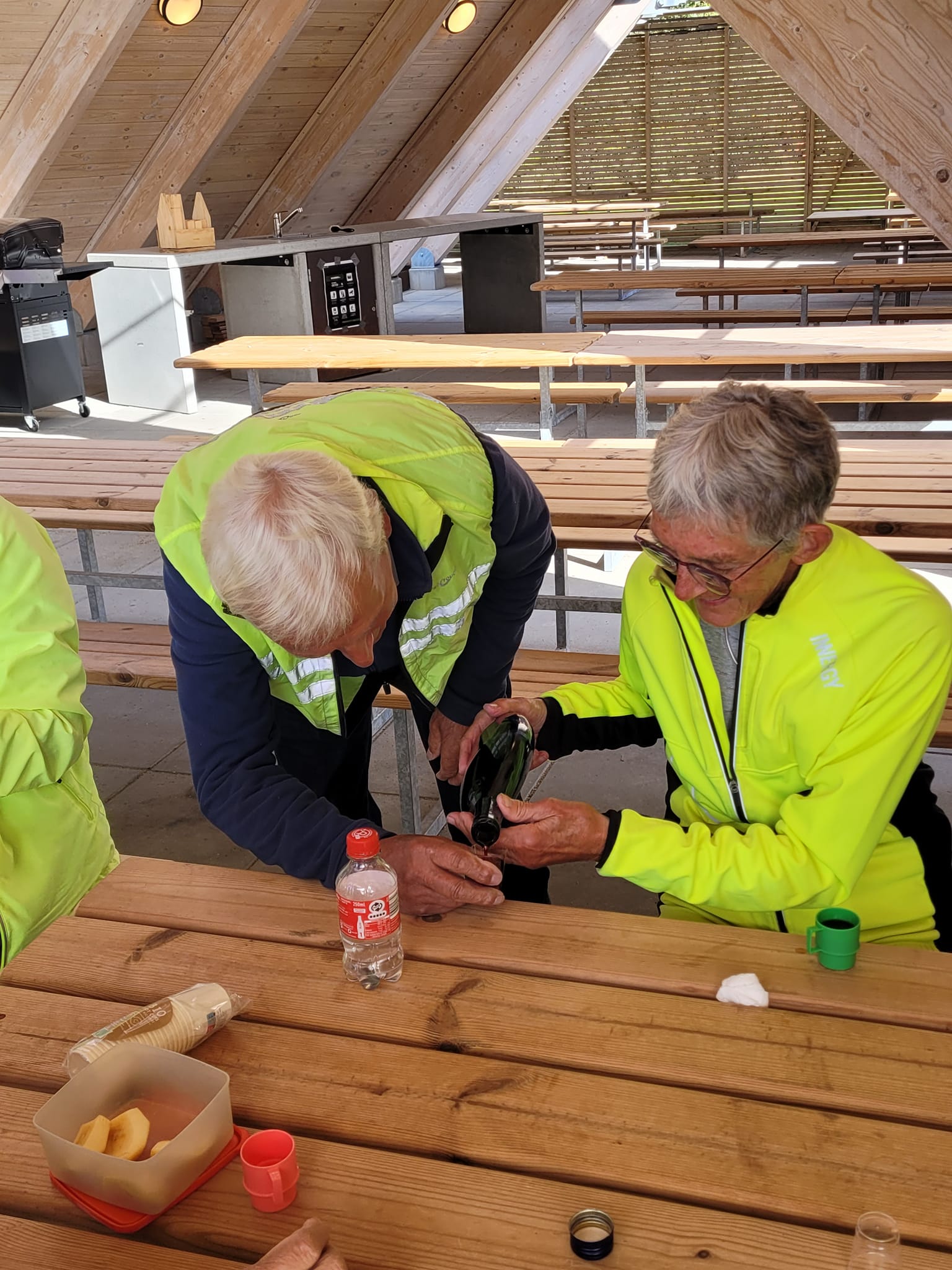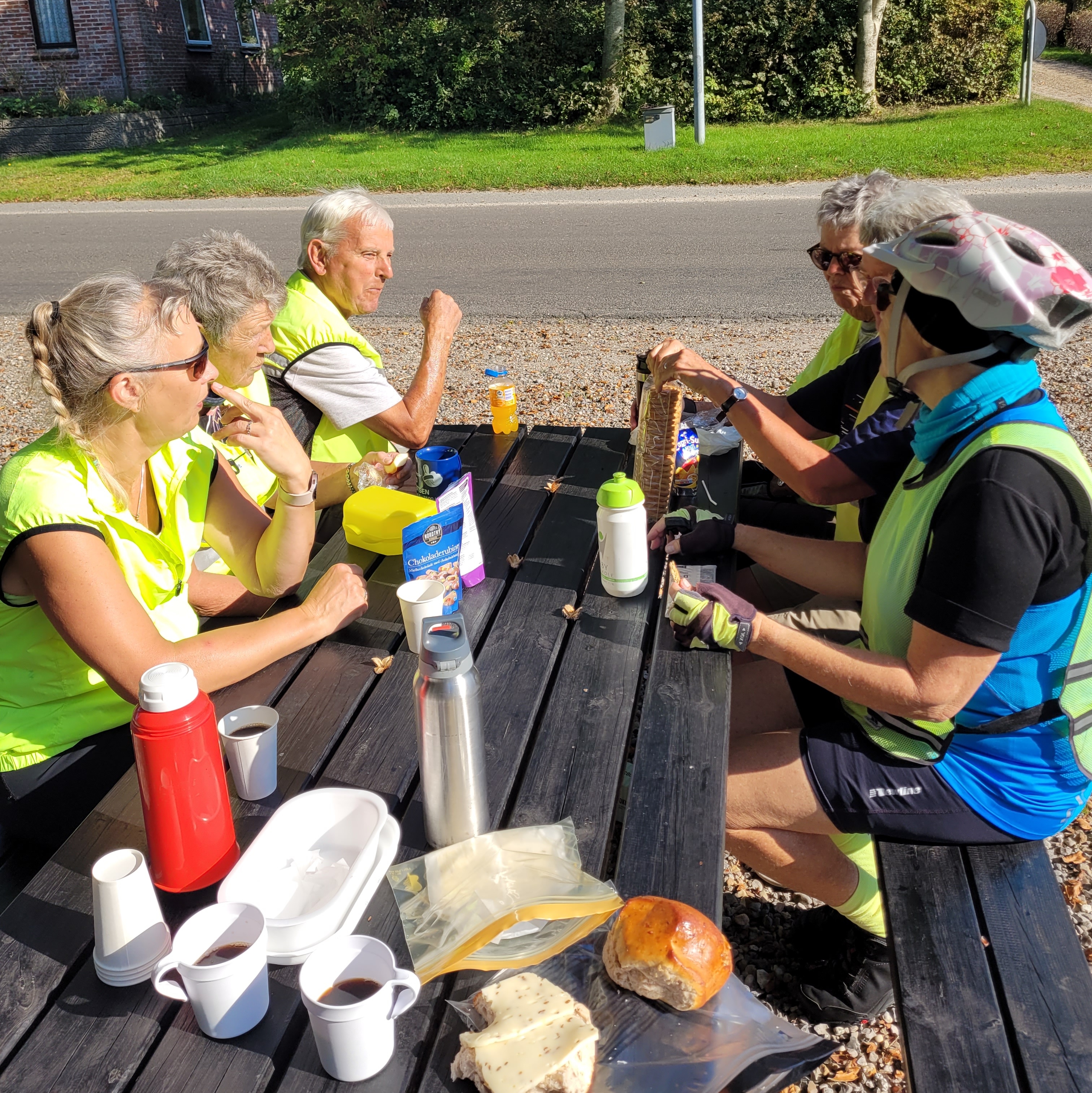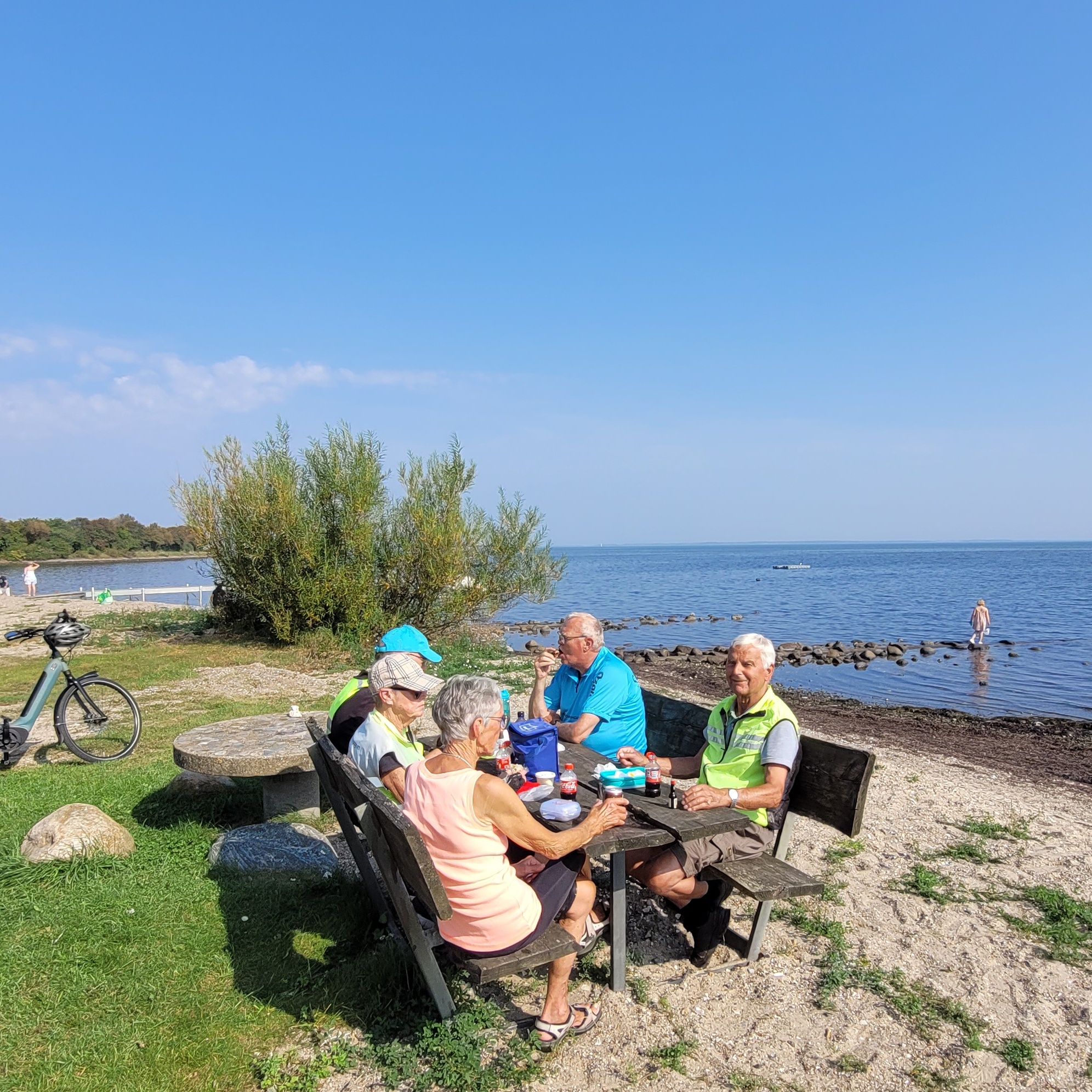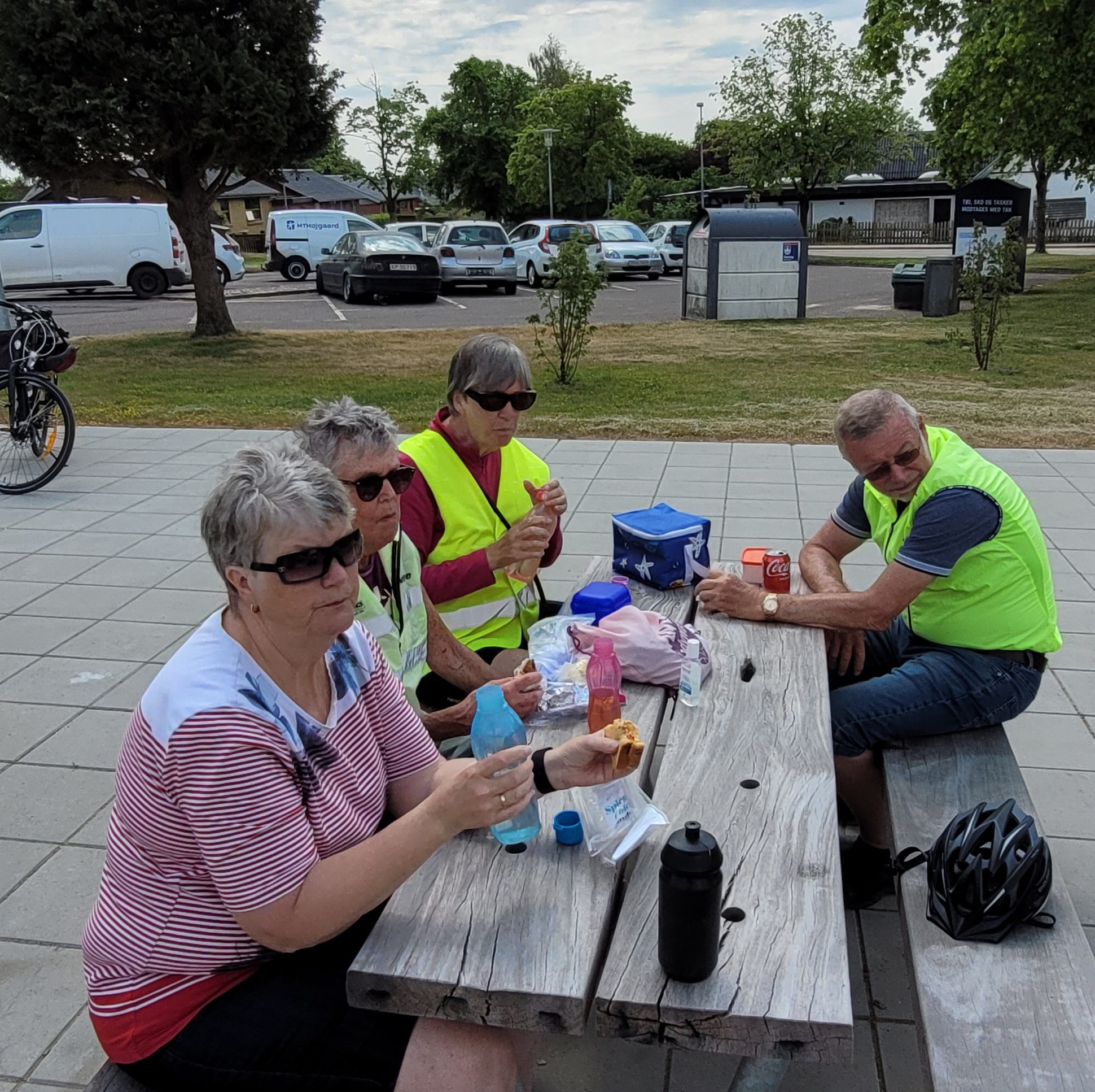 Utroligt flot cykelvejr i dag. 2 m/s fra syd – så det var stort set ingen vind. Vi satte kursen mod Sørvad og havde pause i Fiskerhuset. Vi havde 2 stk. vi skulle have fejret i dag – fødselsdag ved Jens Thomsen og Vera Bagge.