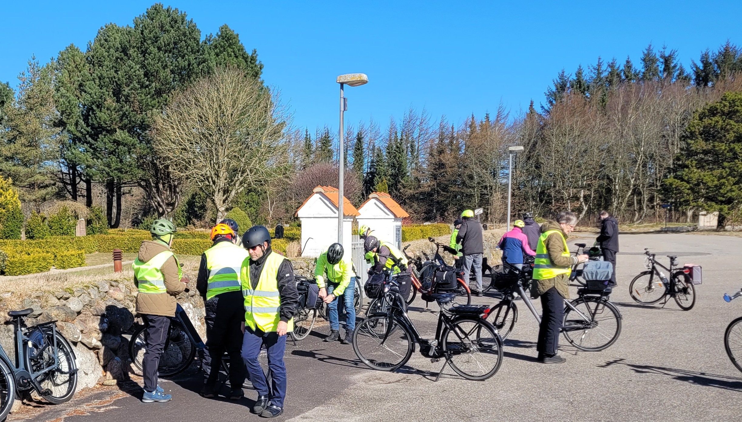 19.4.23: Vi var 13 stk. på 38 km over Hjerm–Vejrum–Asp. Pause ved sportspladsen i Vejrum + i Asp.