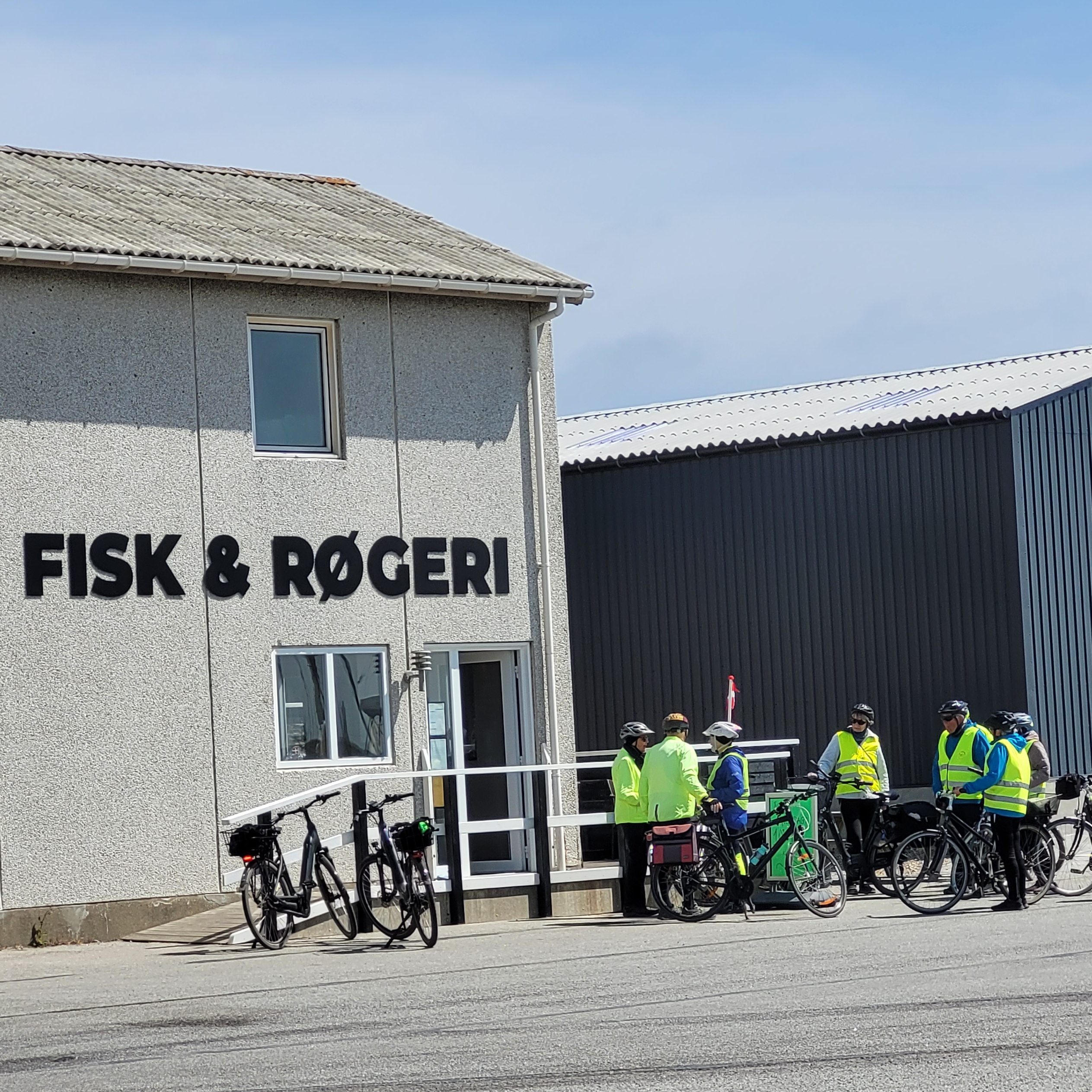 Vi cyklede til fiskerhuset i Sørvad og hjemturen var over en alternativ rute i Sørvad og hjem via Tvis. I Fiskerhuset gav Grete & Jes en skarp. Tak for det og tillykke med dagen, Jes.