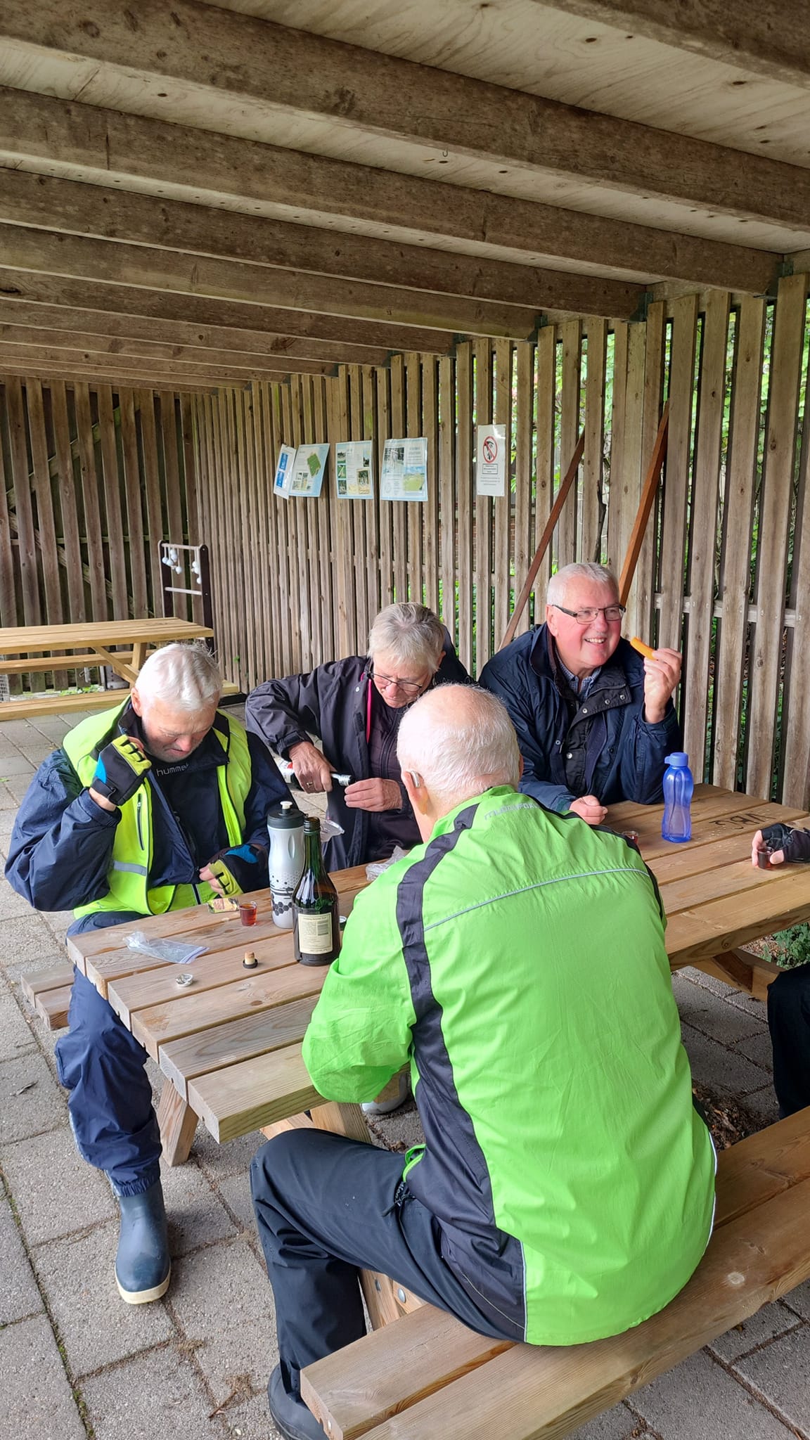 Her holdt vi pause og her fik vi ønsket Kristian O tillykke med dagen. Det skete ikke i vores drikkevand, nej der var finere forhold i dag – nemlig Nordsøolie. Tak Kristian for traktement.