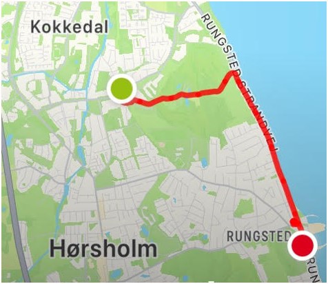 Herunder et kort, der viser turen fra Kokkedal Station til Rungstedlund