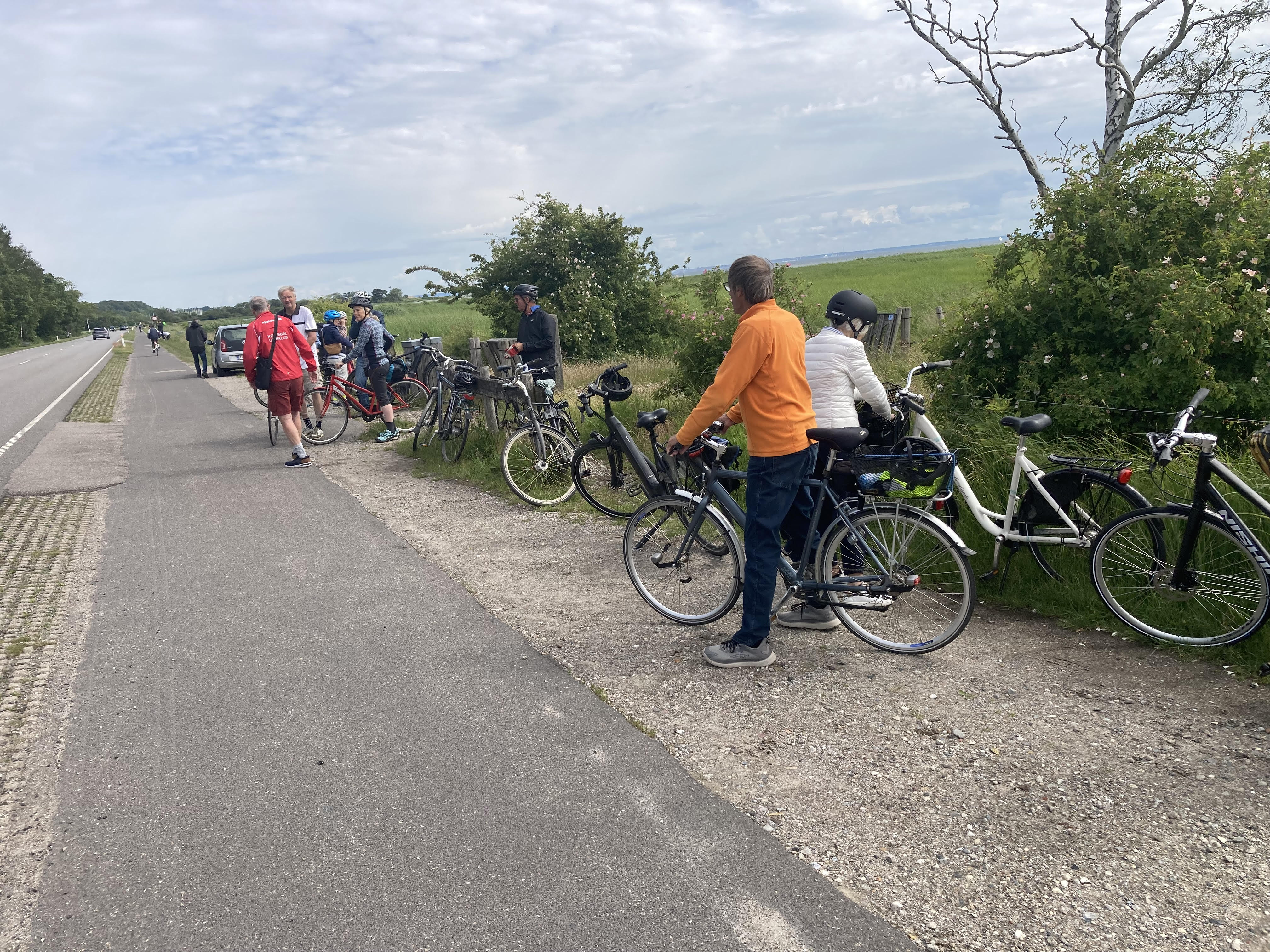 En flok morgenfriske cyklister mødte op på Kokkedal Stations vestside, hvorefter turen gik via Kokkeal Slot til Strandvej, som vi fulgte til Rungsted. Inden vi kom til Rungstedlund, besøgte vi den såkaldte Ewalds Høj og fik en orientering om Johannes Ewald og hans ophold i Rungsted. Du kan læse om Johannes Ewalds høj her.