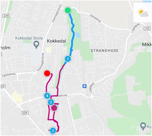 Her et kort der viser ruten for dagens meget vellykkede tur.