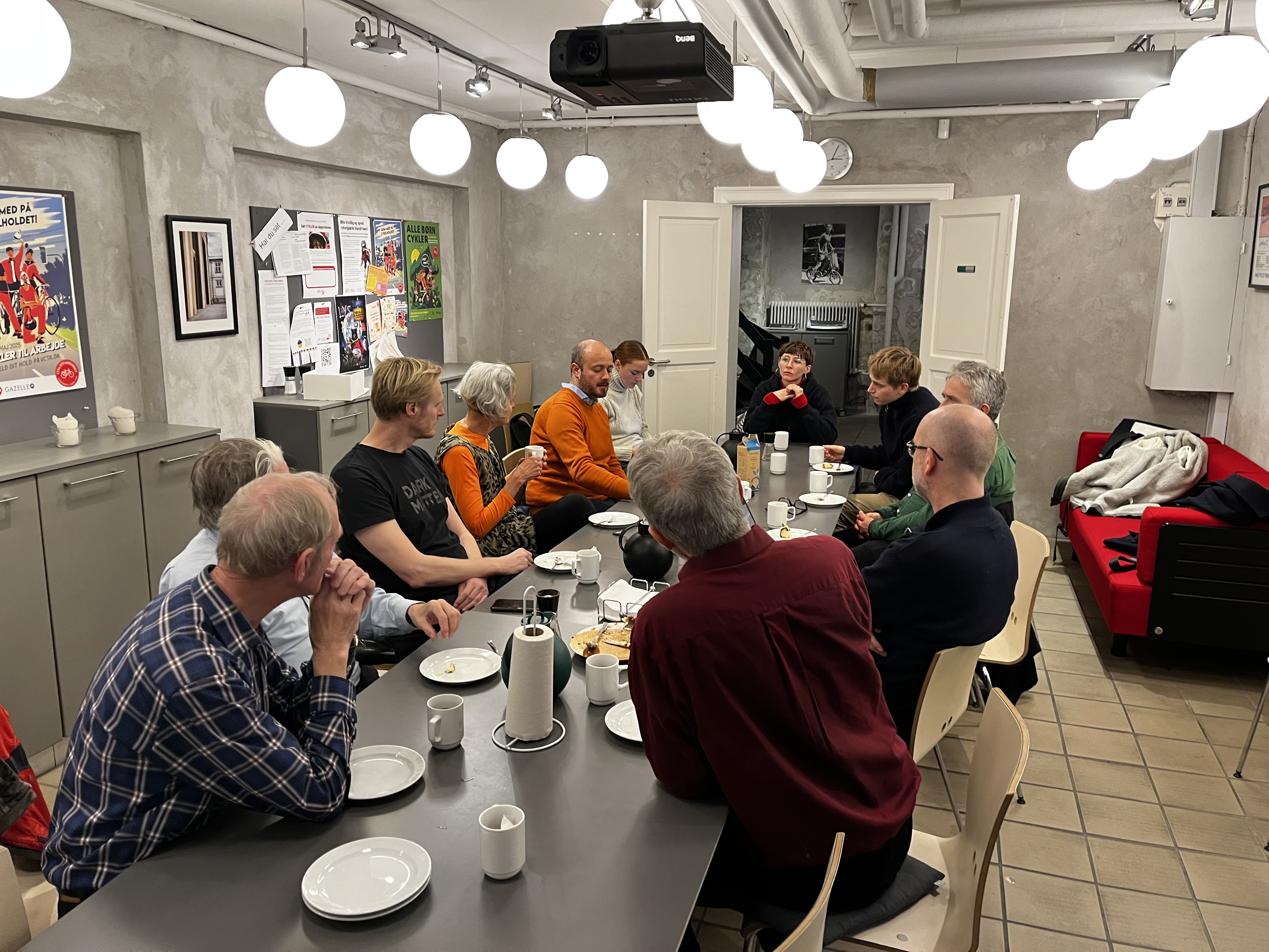Kører tilbage ad Nyhavn, Kongens Nytorv, Gothersgade og ind over Sværtegade :( - med ensretning også for cyklister, selv om det er vigtig genvej. Tilbage i Rømersgade til opsamling med kaffe og kage, og grundig snak.