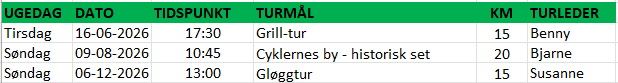 Cykelture for 2026 er under udarbejdelse.